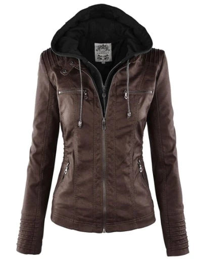 Dámská koženková bunda s látkovou kapucí (Skladem v ČR)