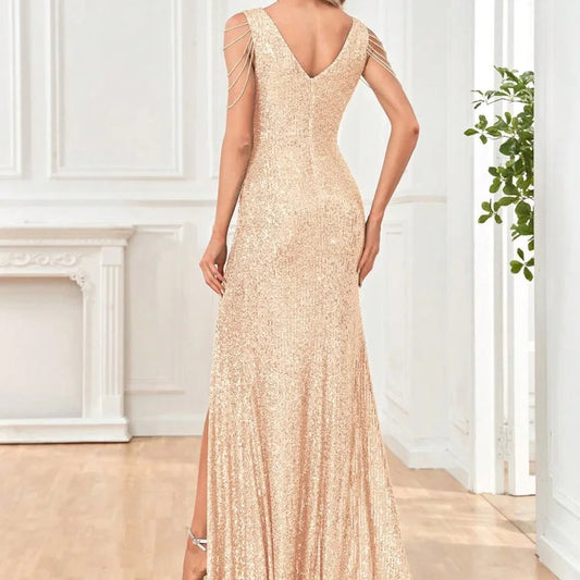 Ušetříte 27%Dámské elegantní třpytivé šaty s rozparkem