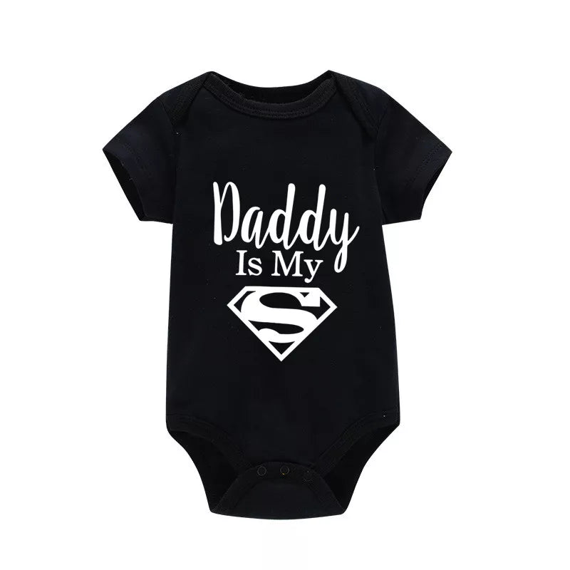 Body pro batolata s nápisem Daddy Is My Hero. Více barev na výběr.
