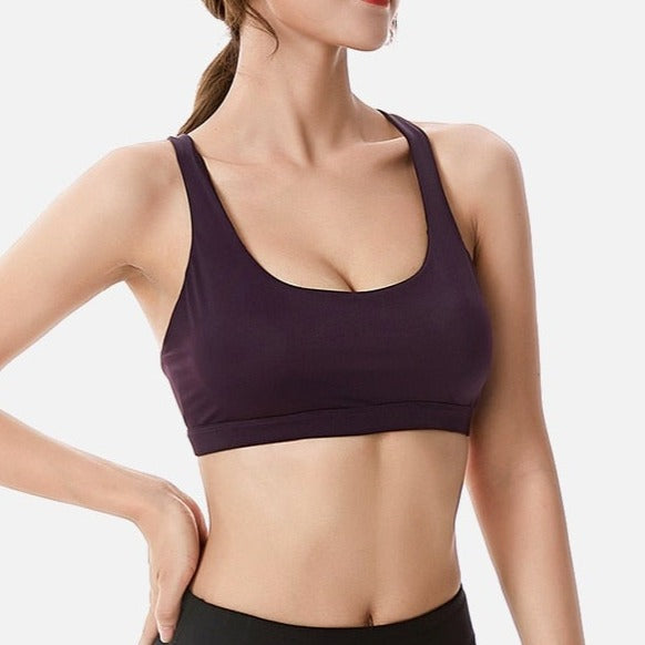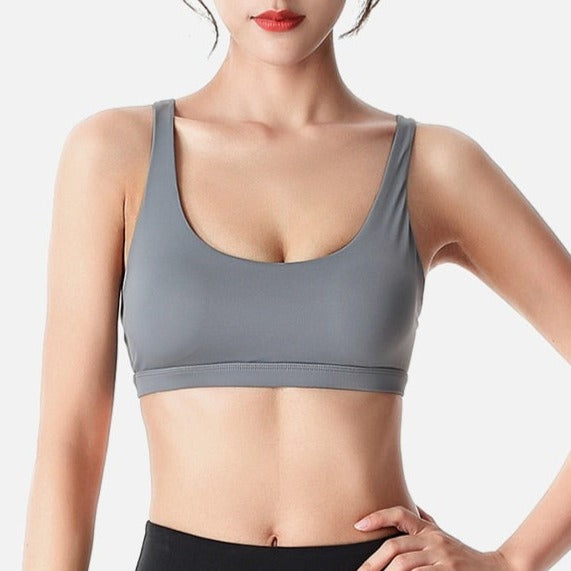 Dámská pohodlná fitness podprsenka s moderním detailem na zádech.