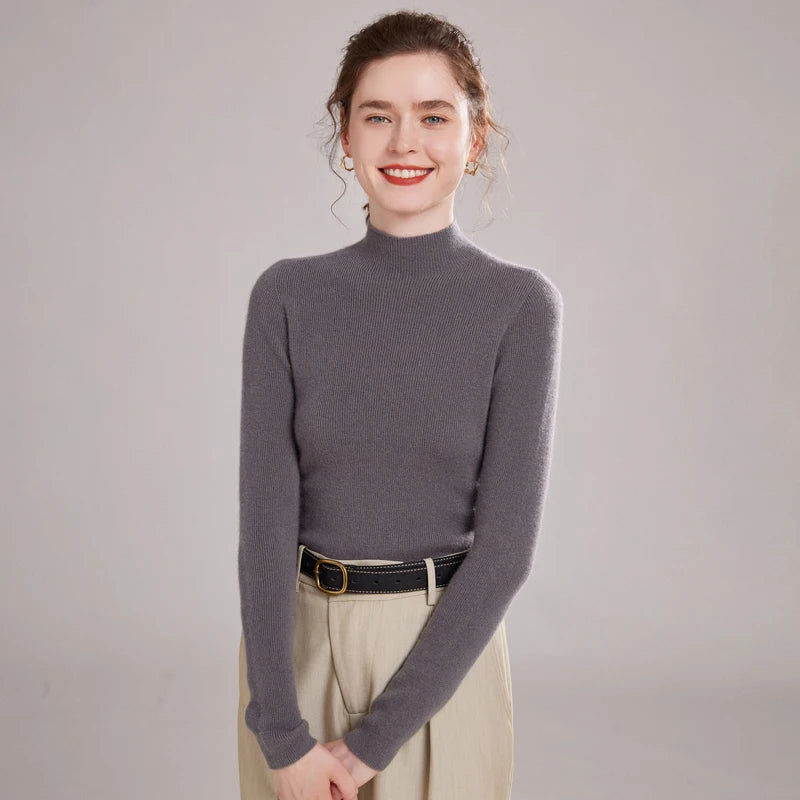 Dámský kašmírový pohodlný svetr s polo rolákem. Více barev na výběr.