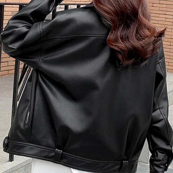 Dámská stylová kožená křiváková bunda v černé nebo bílé barvě.
