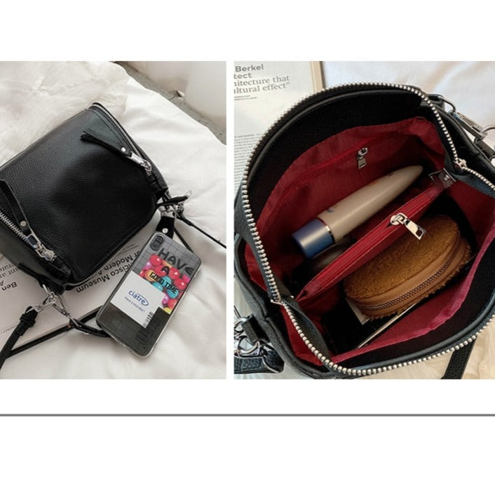 Dámská stylová jednoduchá kožená messenger kabelka v černé barvě.