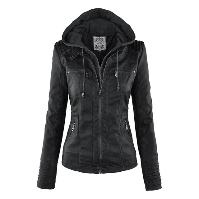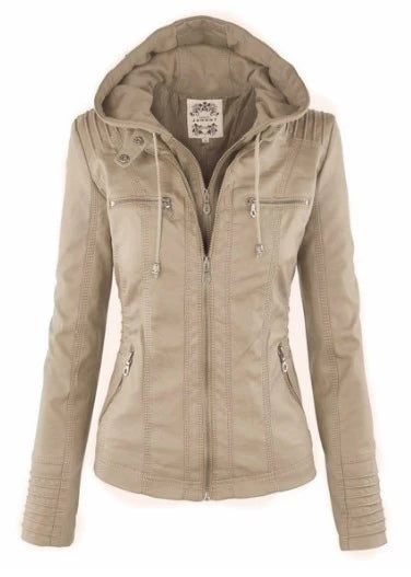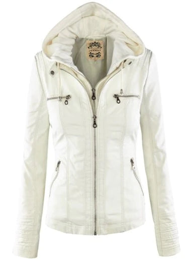 Dámská koženková bunda s látkovou kapucí (Skladem v ČR)