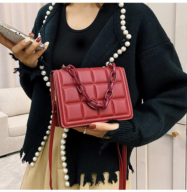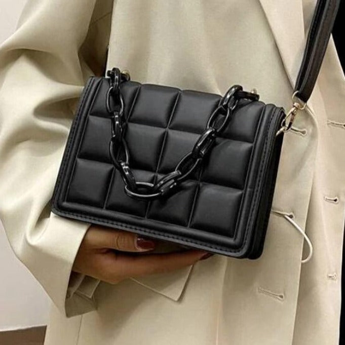 Dámská stylová malá kabelka s geometrickými detaily a řetězem. Více barev na výběr.