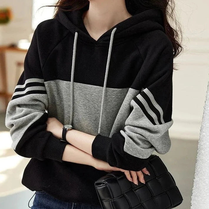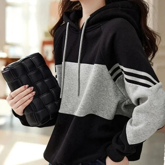 Dámská pohodlná mikina s pruhy a kapucí. Více velikostí na výběr.