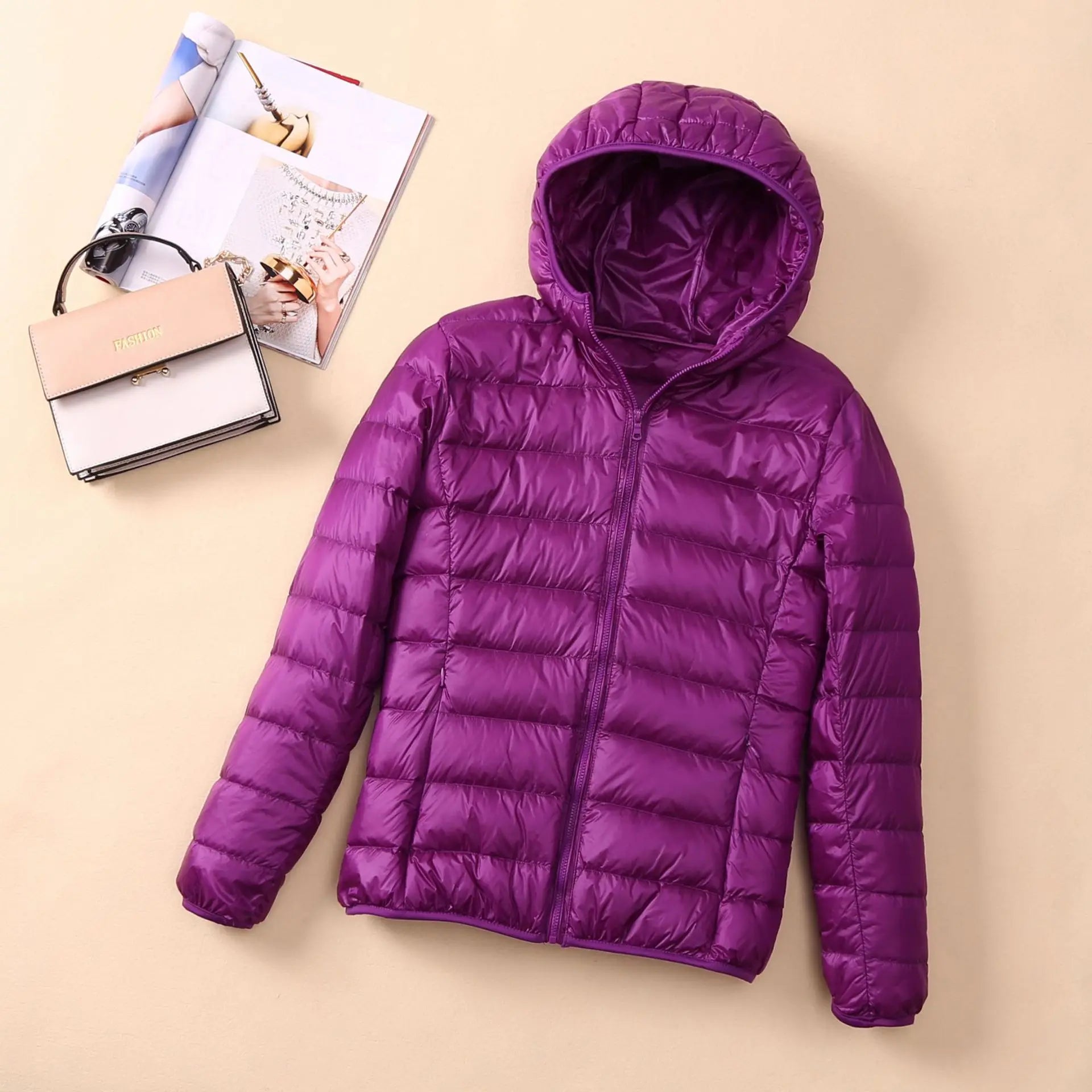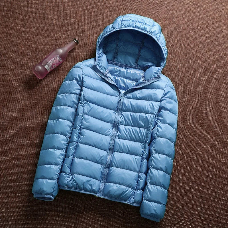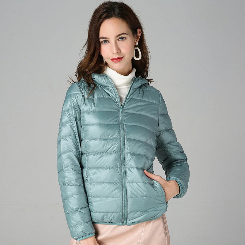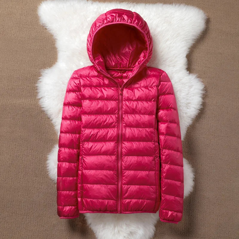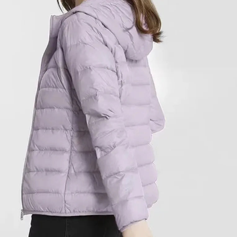 Dámská stylová pohodlná péřová bunda s kapucí. Více barev na výběr.
