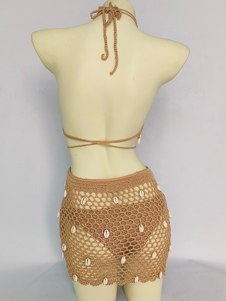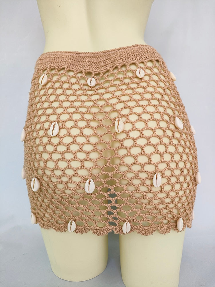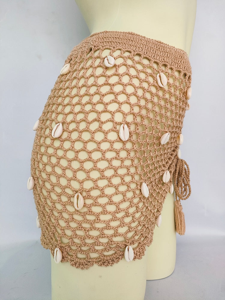 Dámská boho plážová sukně s mušlemi.