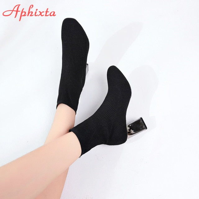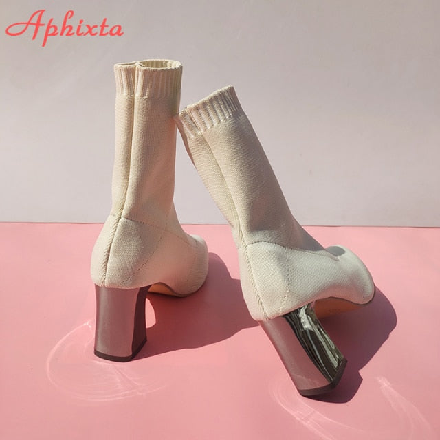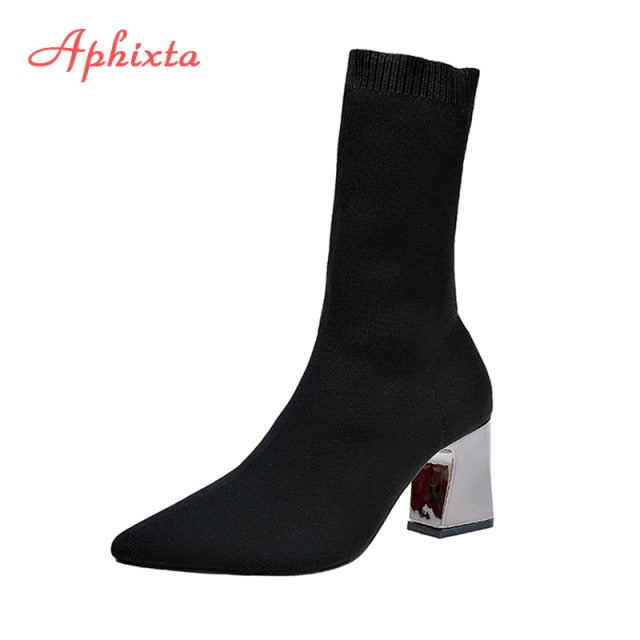 Dámské ponožkové boty na podpatku se stříbrným podpatkem. Více druhů na výběr.