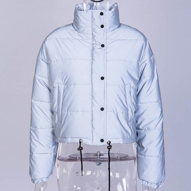 Dámská originální reflexní bunda. Je teplá se zapínáním na zip a knoflíky. Bundu nabízíme v kratší a delší variantě.