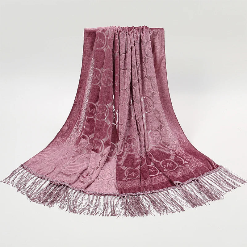 Dámská šál se vzorem a třásněmi. Více barev na výběr.