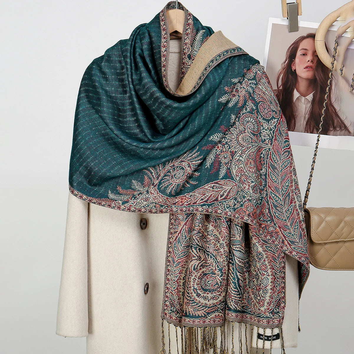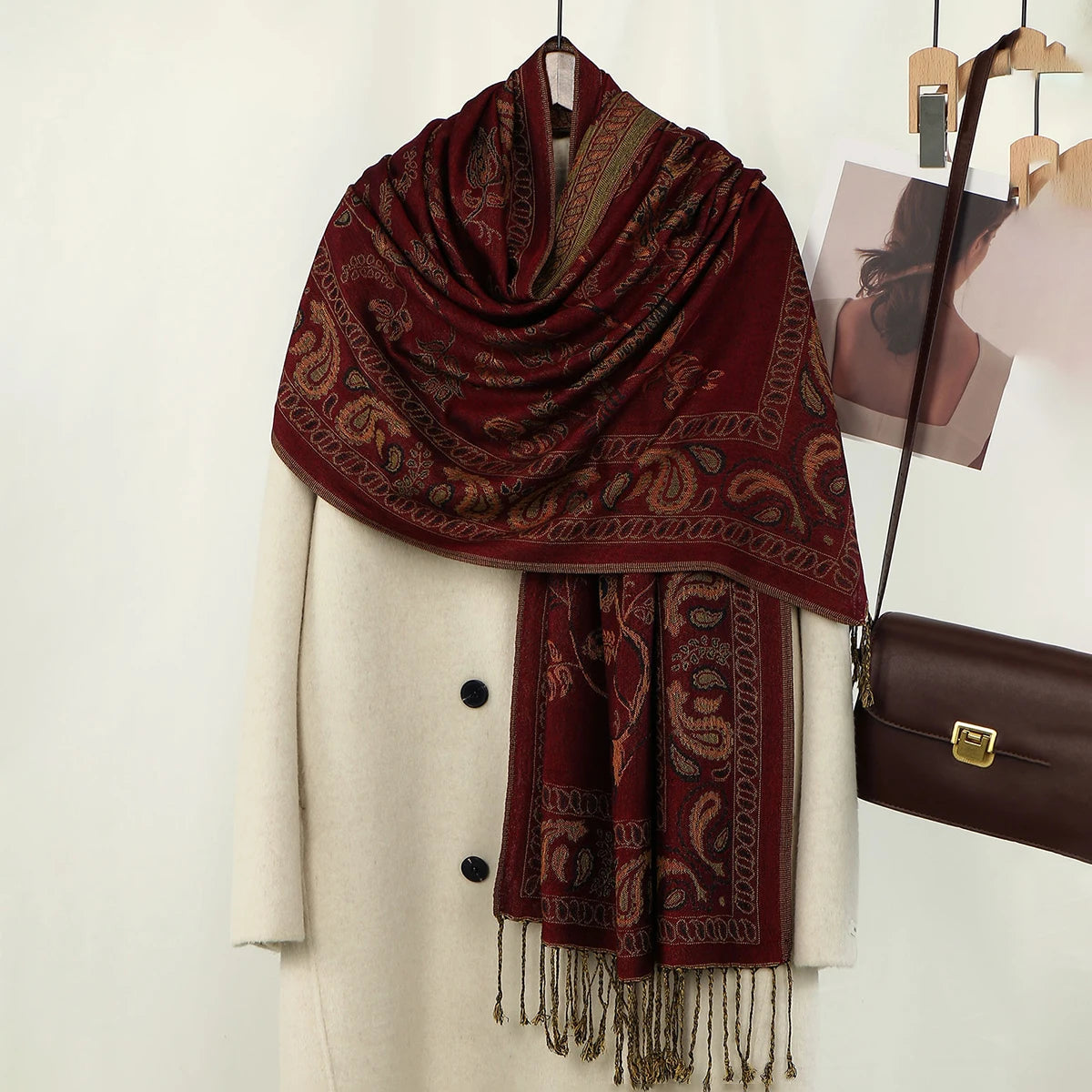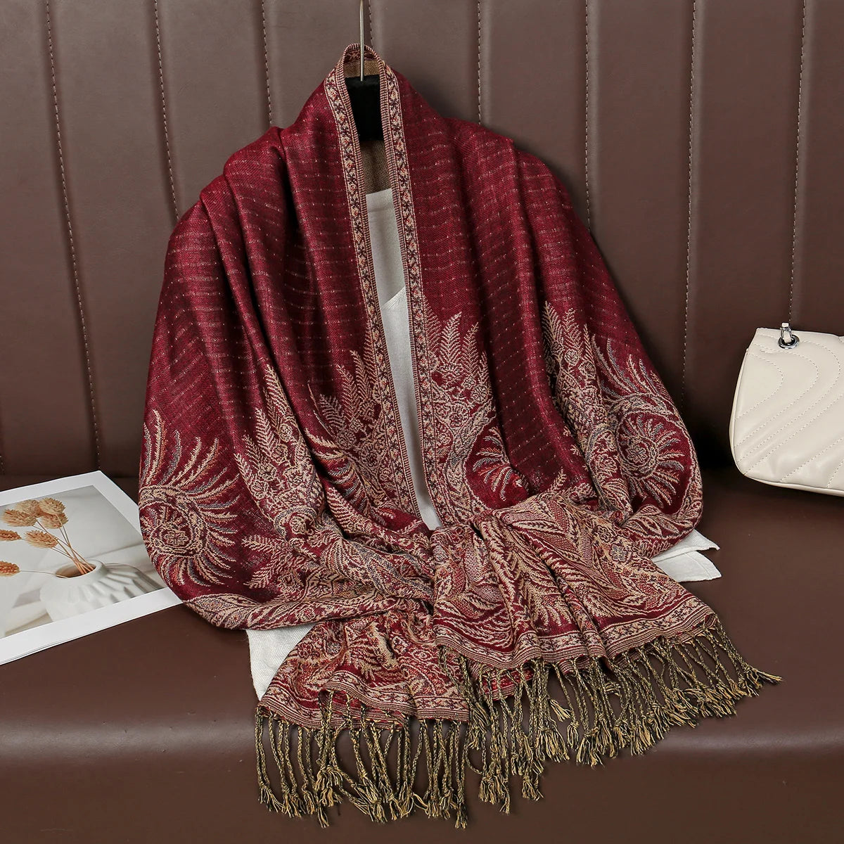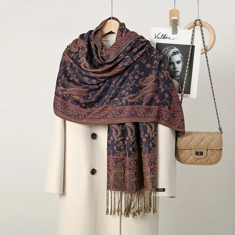 Dámská šál se vzorem s třásněmi ve více barvách na výběr.