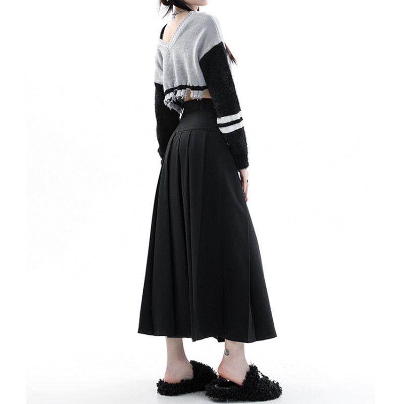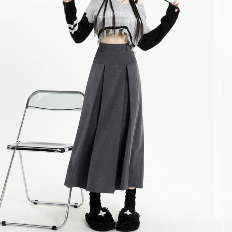 Dámská stylová vintage dlouhá sukně v černé či šedé barvě.