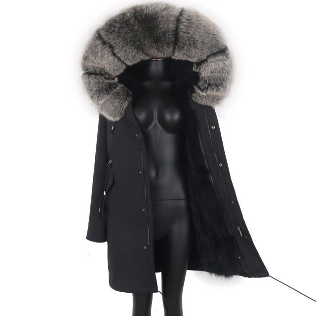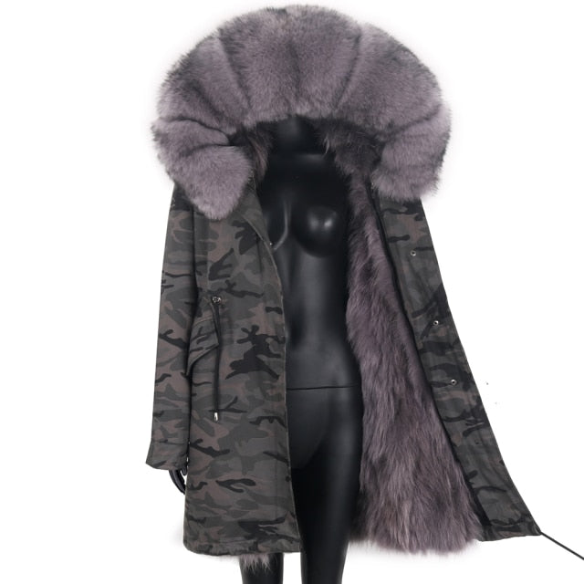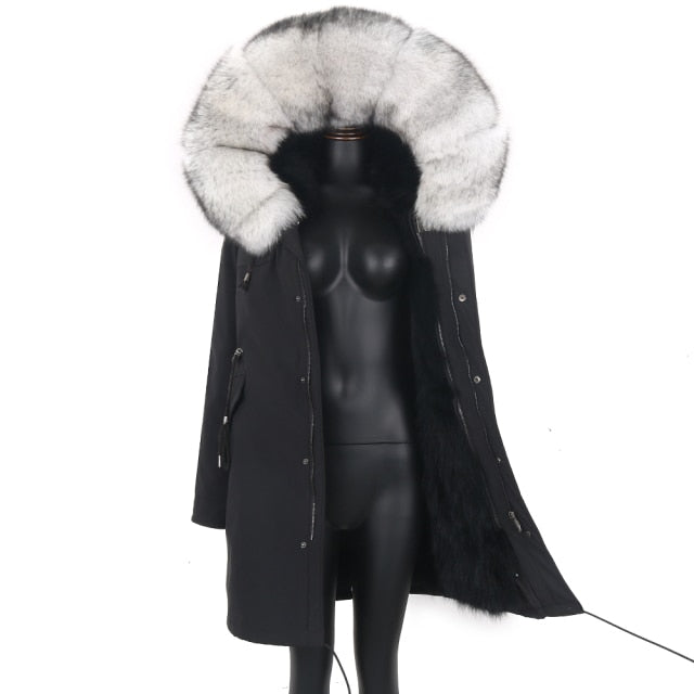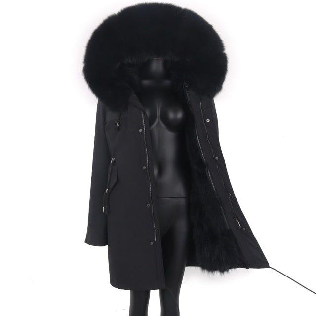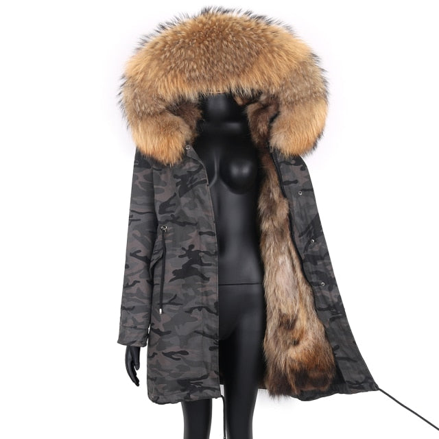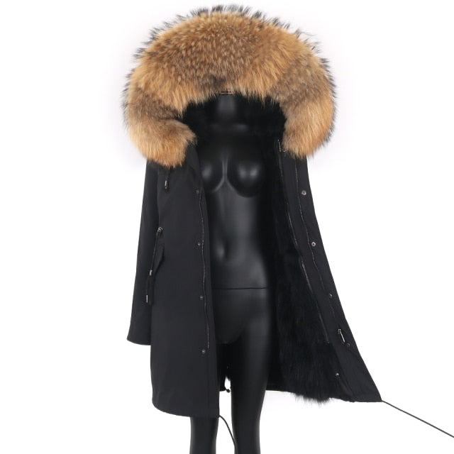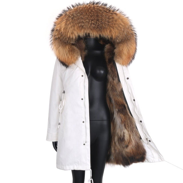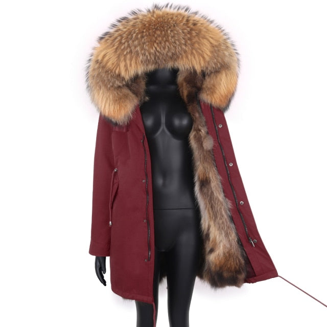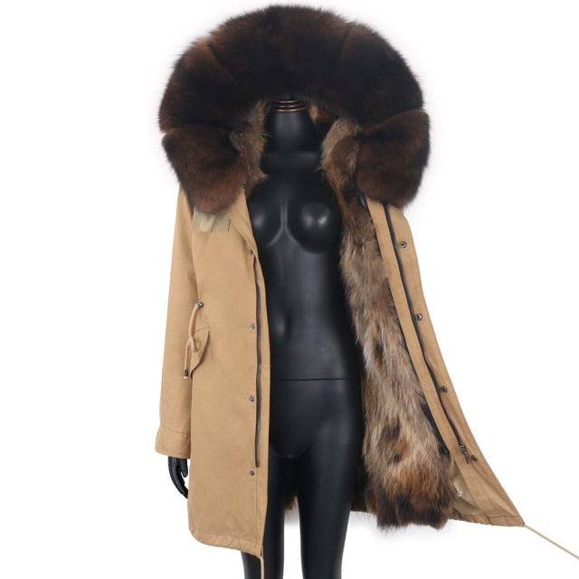 Dámská teplá zimní parka s chlupatou kapucí v různých barvách a velikostech.