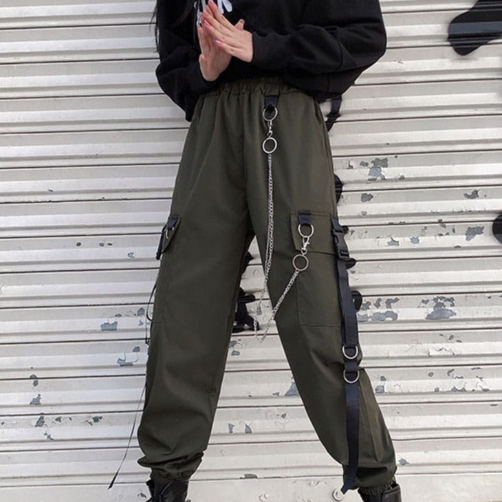 Dámské cargo kalhoty s řetězem (Skladem v ČR)