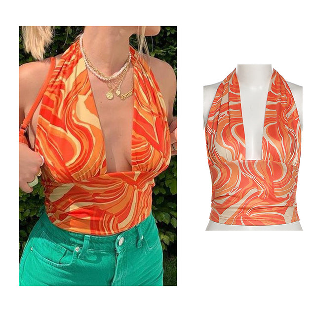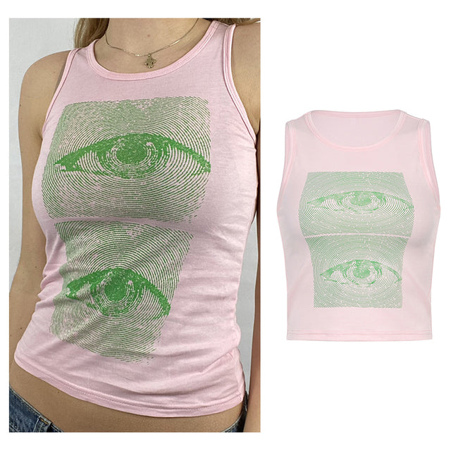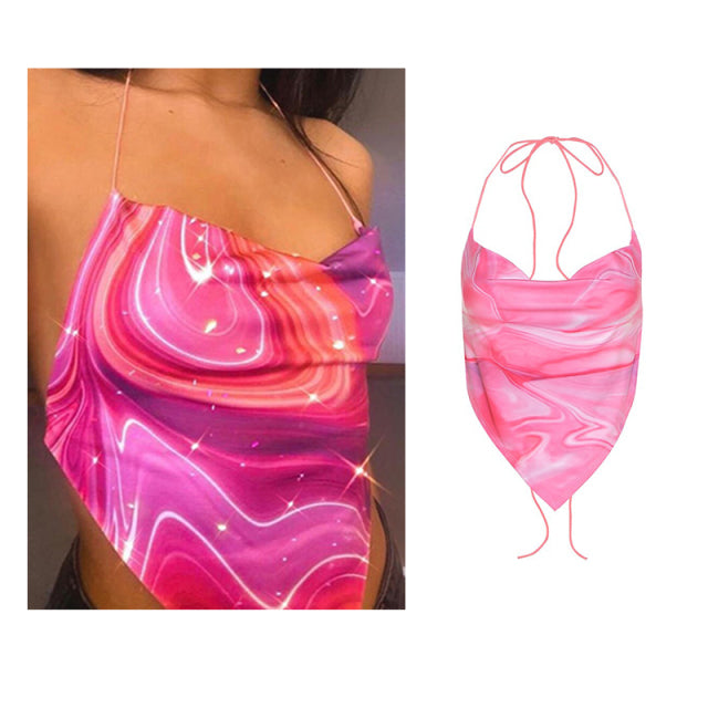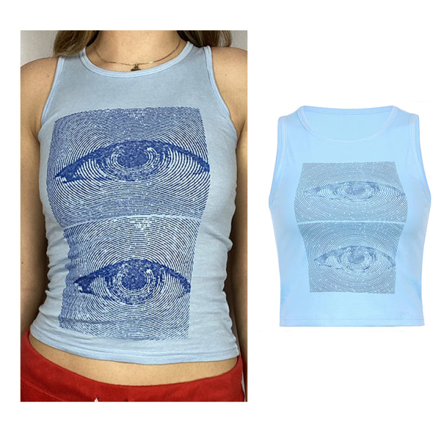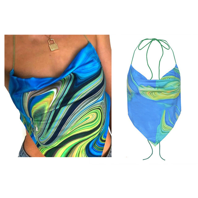 Dámské stylové boho croptop triko bez rukávu se zajímavým potiskem. Více druhů. na výběr.