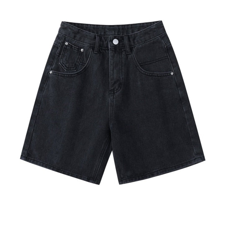 Dámské stylové delší denim kraťasy ve světle modré či černé barvě.