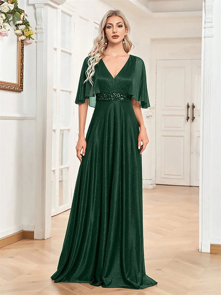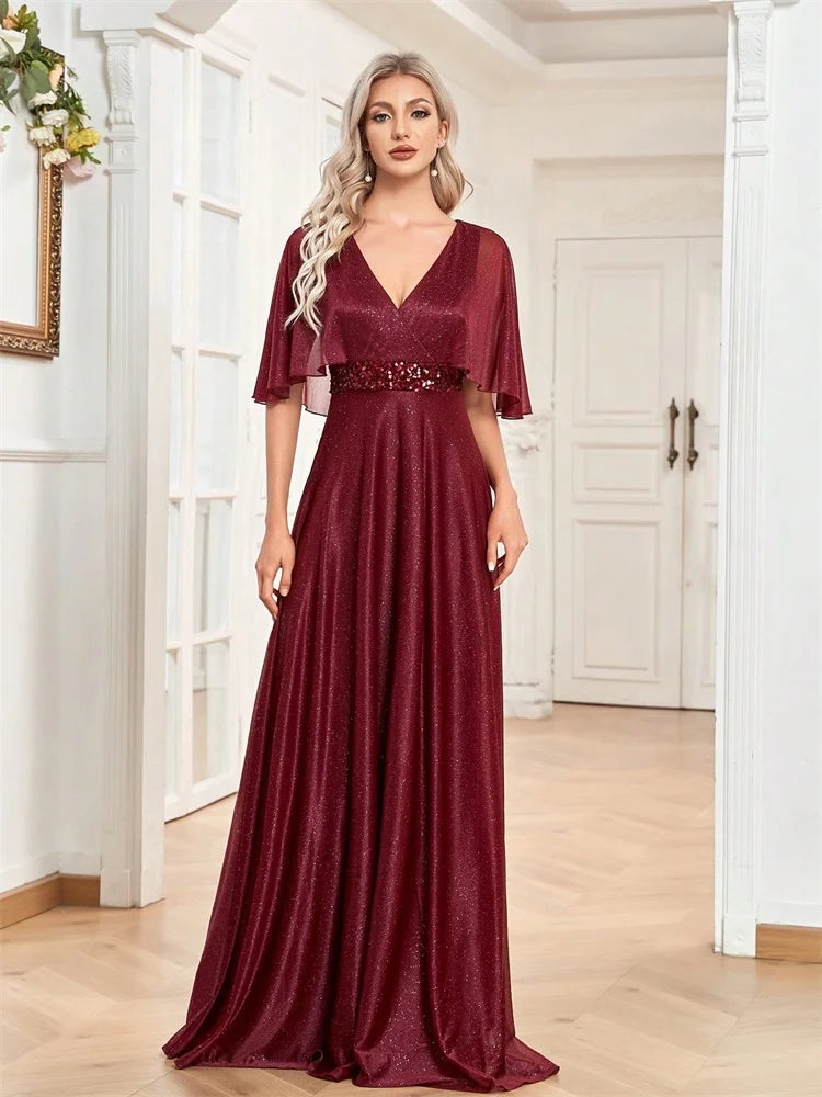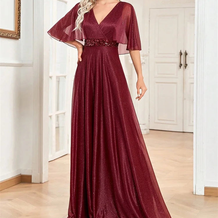 Dámské elegantní plesové šaty s 3/4 rukávem a výstřihem do V. Na výběr z více barev.