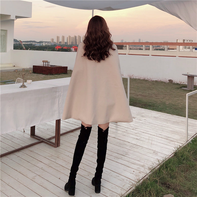 Dámské elegantní pončo s páskem a knoflíky na hrudí ve dvou barvách.