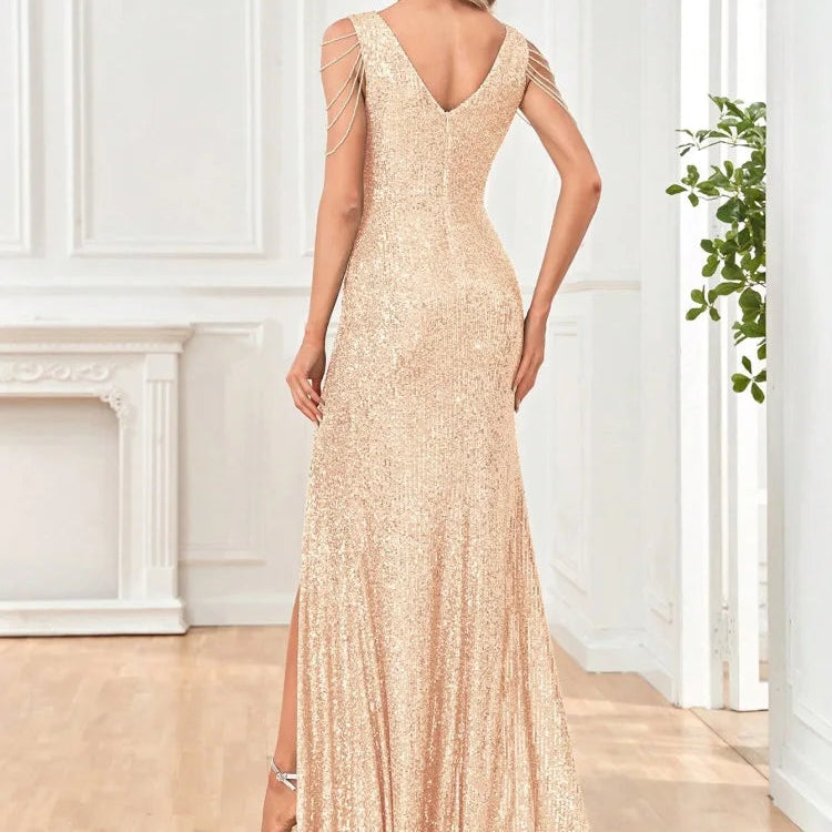 Dámské elegantní třpytivé šaty s rozparkem, které jsou vhodné na ples. Na výběr z více barev.