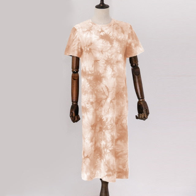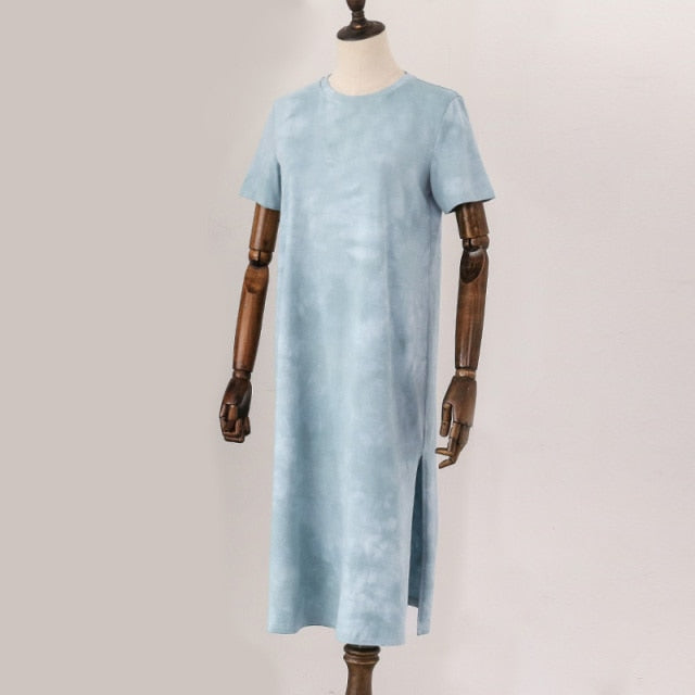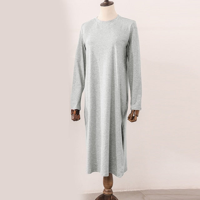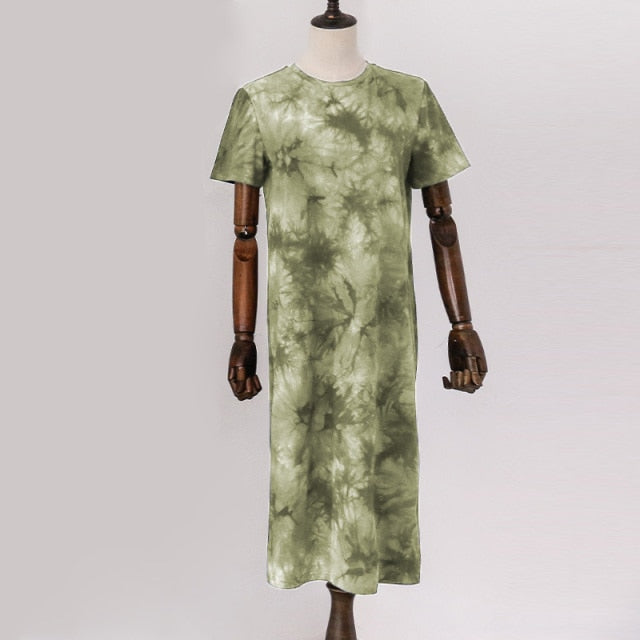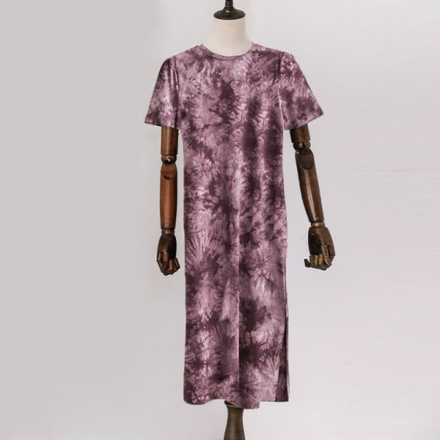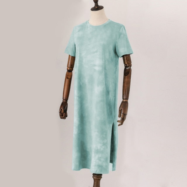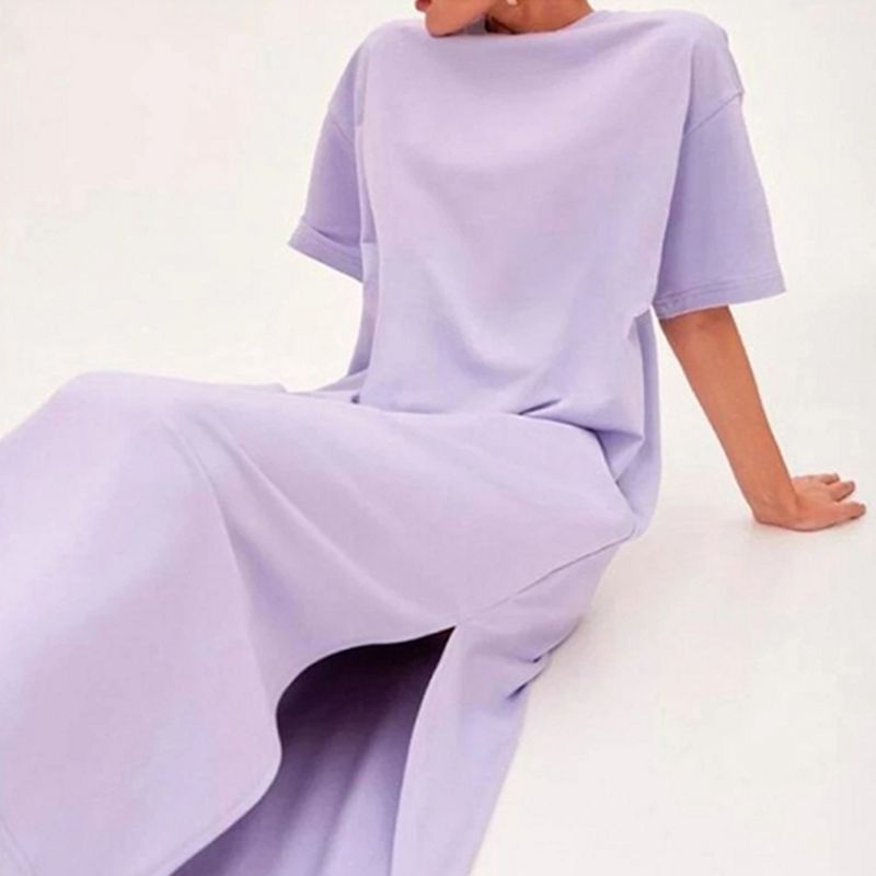 Dámské pohodlné jednobarevné dlouhé šaty s krátkým rukávem a výřezem. Více barev na výběr.