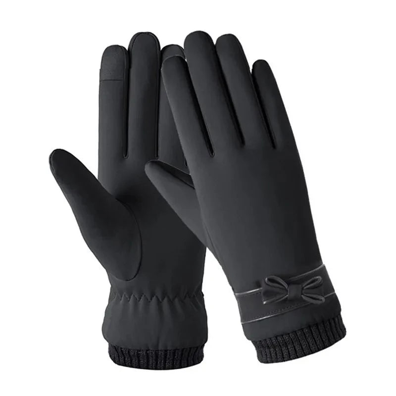 Dámské teplé jednobarevné rukavice s malou mašlí na zápěstí. Více barev na výběr.