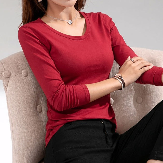 Dámské jednoduché triko s dlouhým rukávem