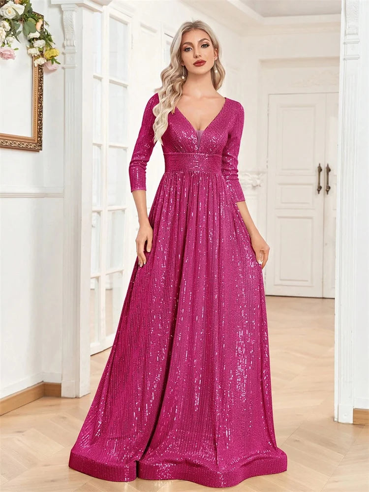 Dámské elegantní plesové šaty s dlouhým rukávem. Na výběr z více barev.