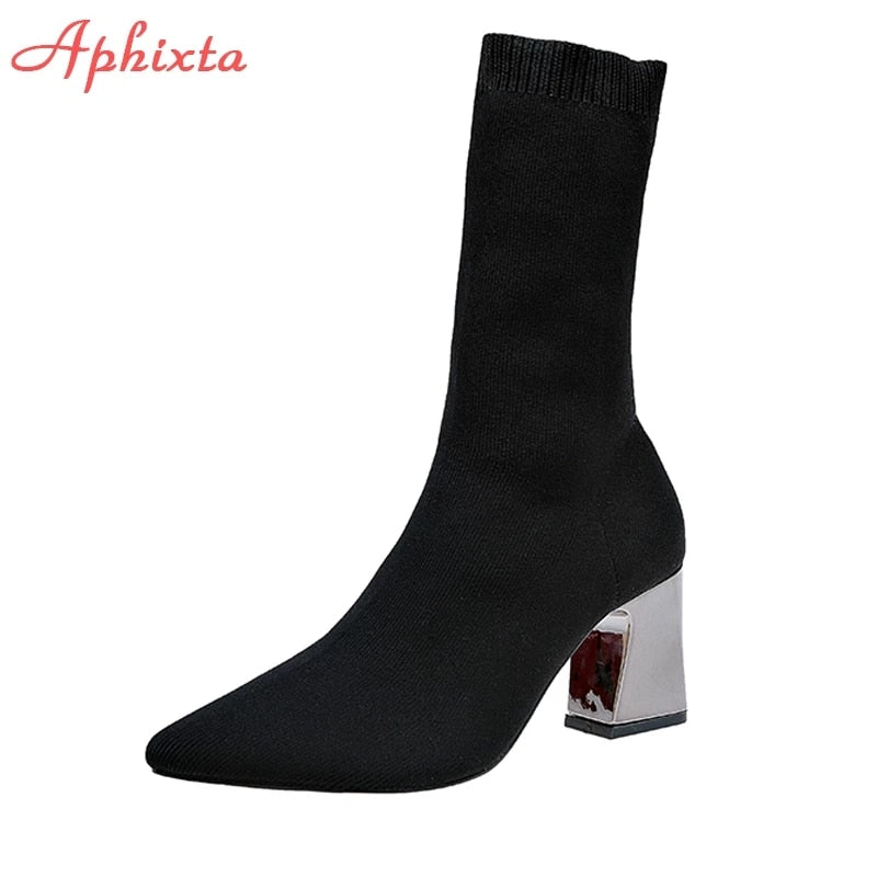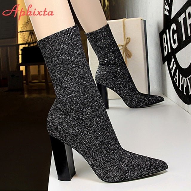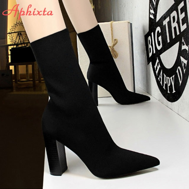 Dámské ponožkové boty na podpatku (Skladem v ČR)
