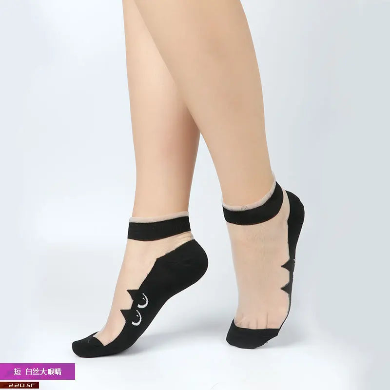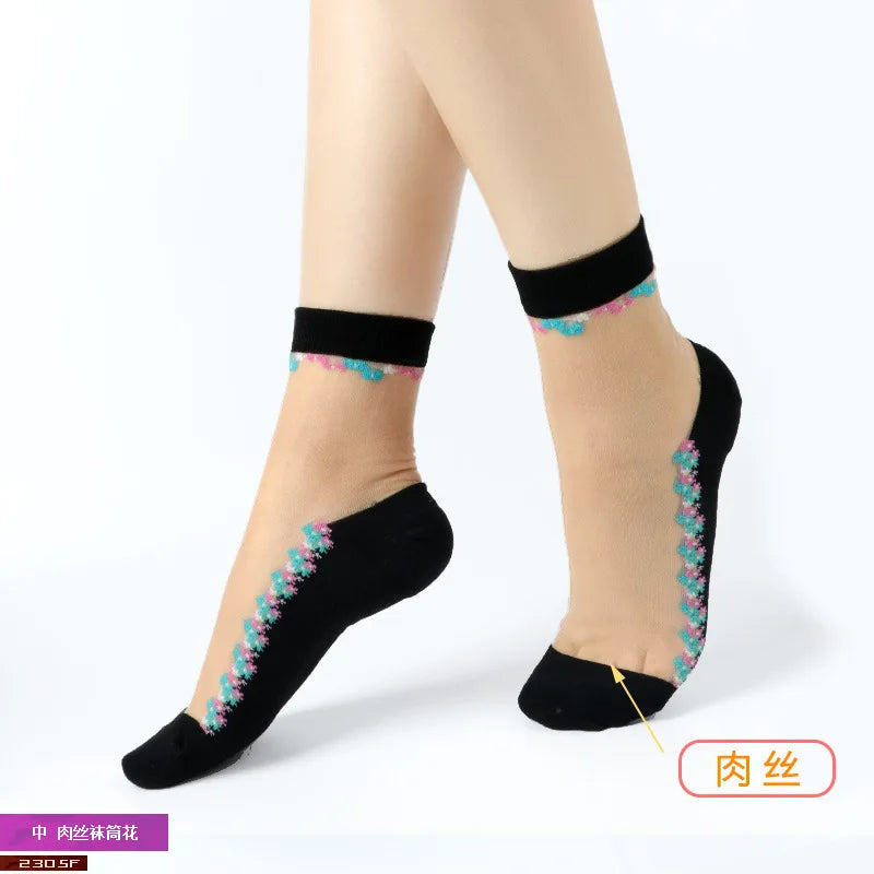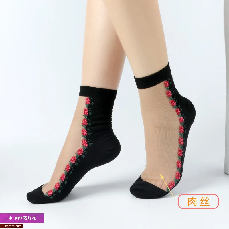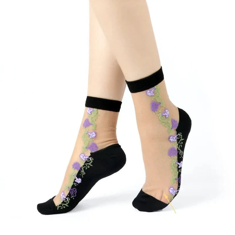 Dámské průhledné ponožky s květinou. Více druhů na výběr.