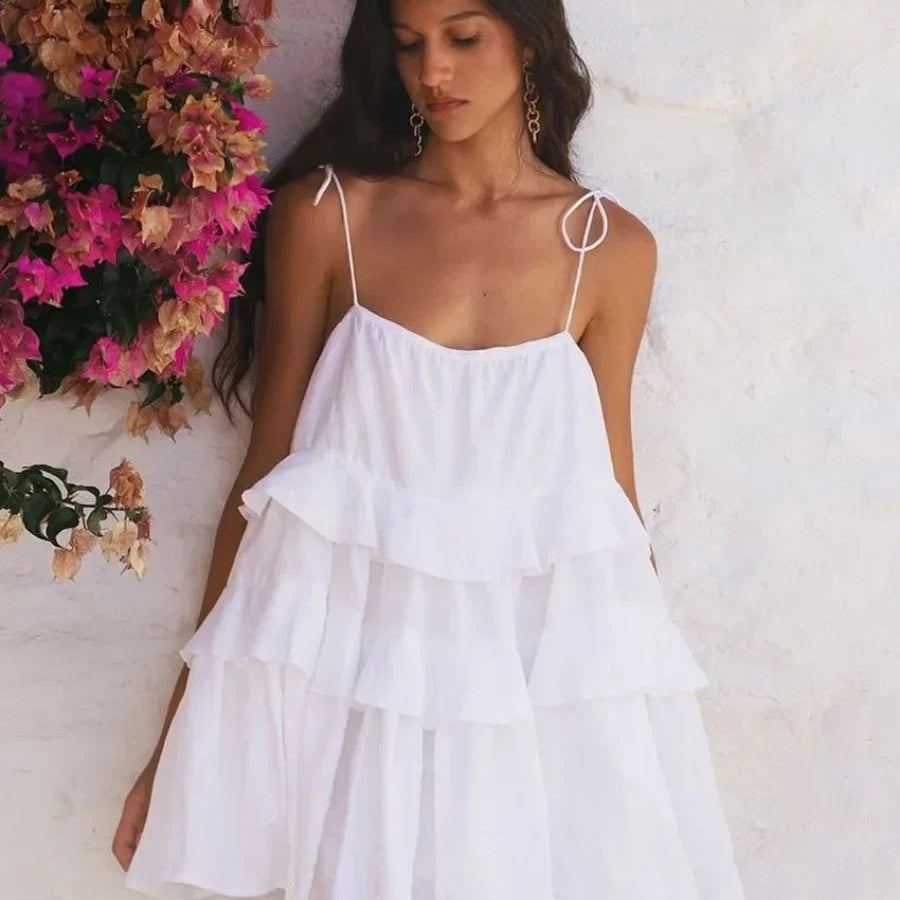 Dámské elegantní šaty s volánky bez rukávu ve více barvách.
