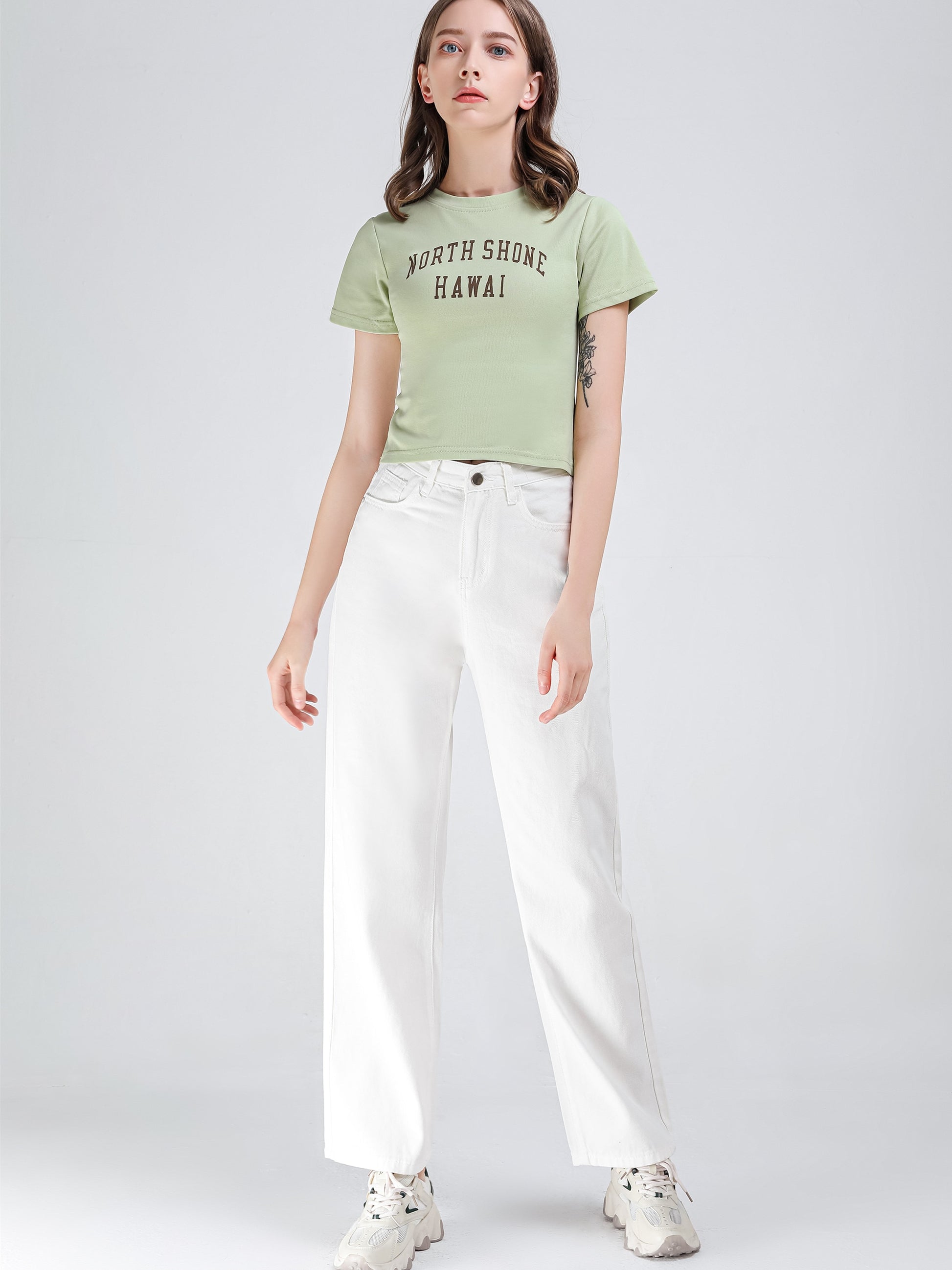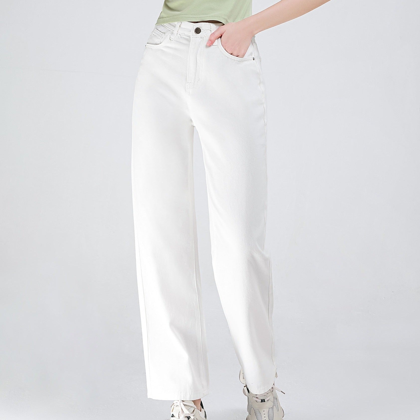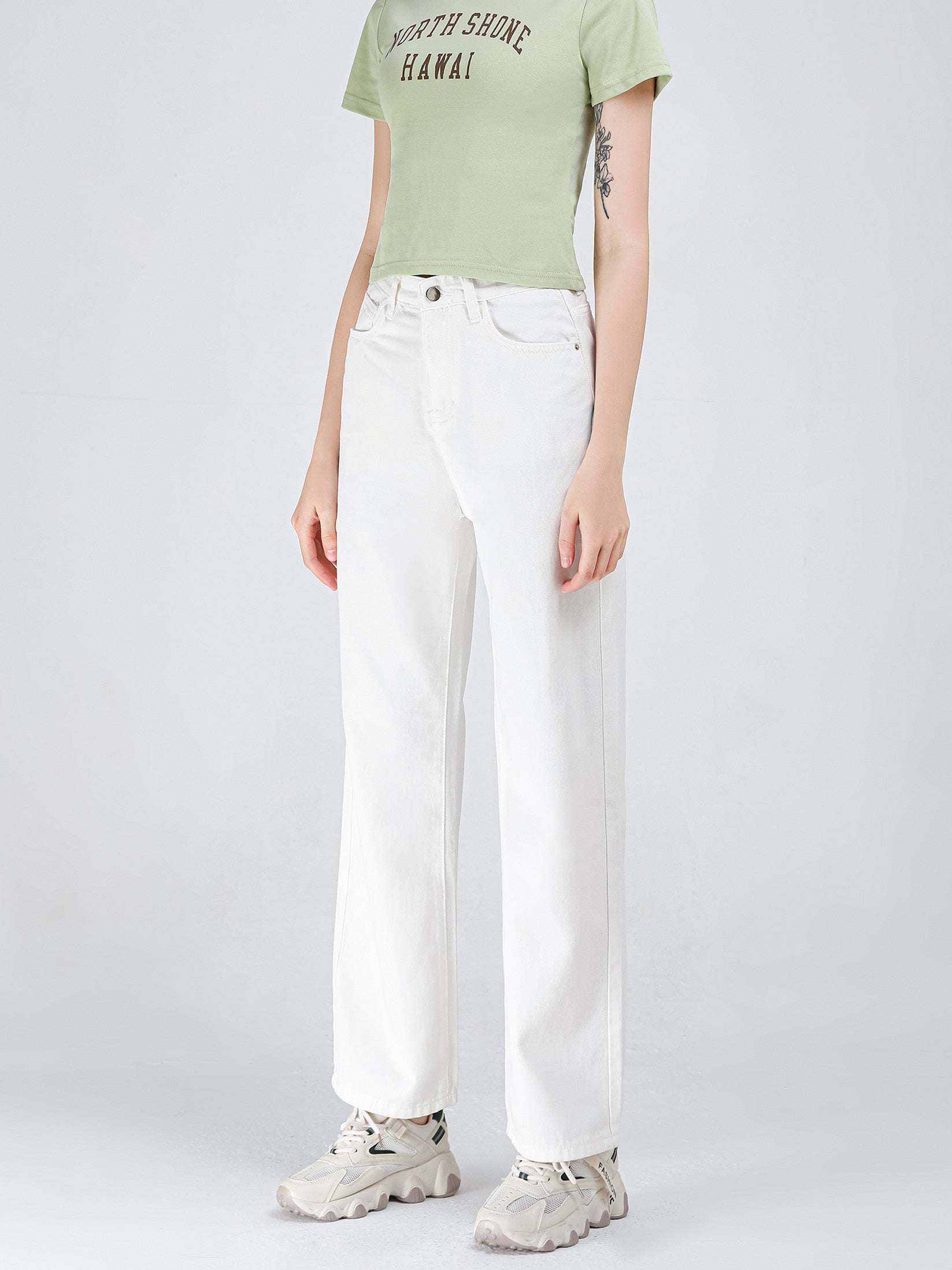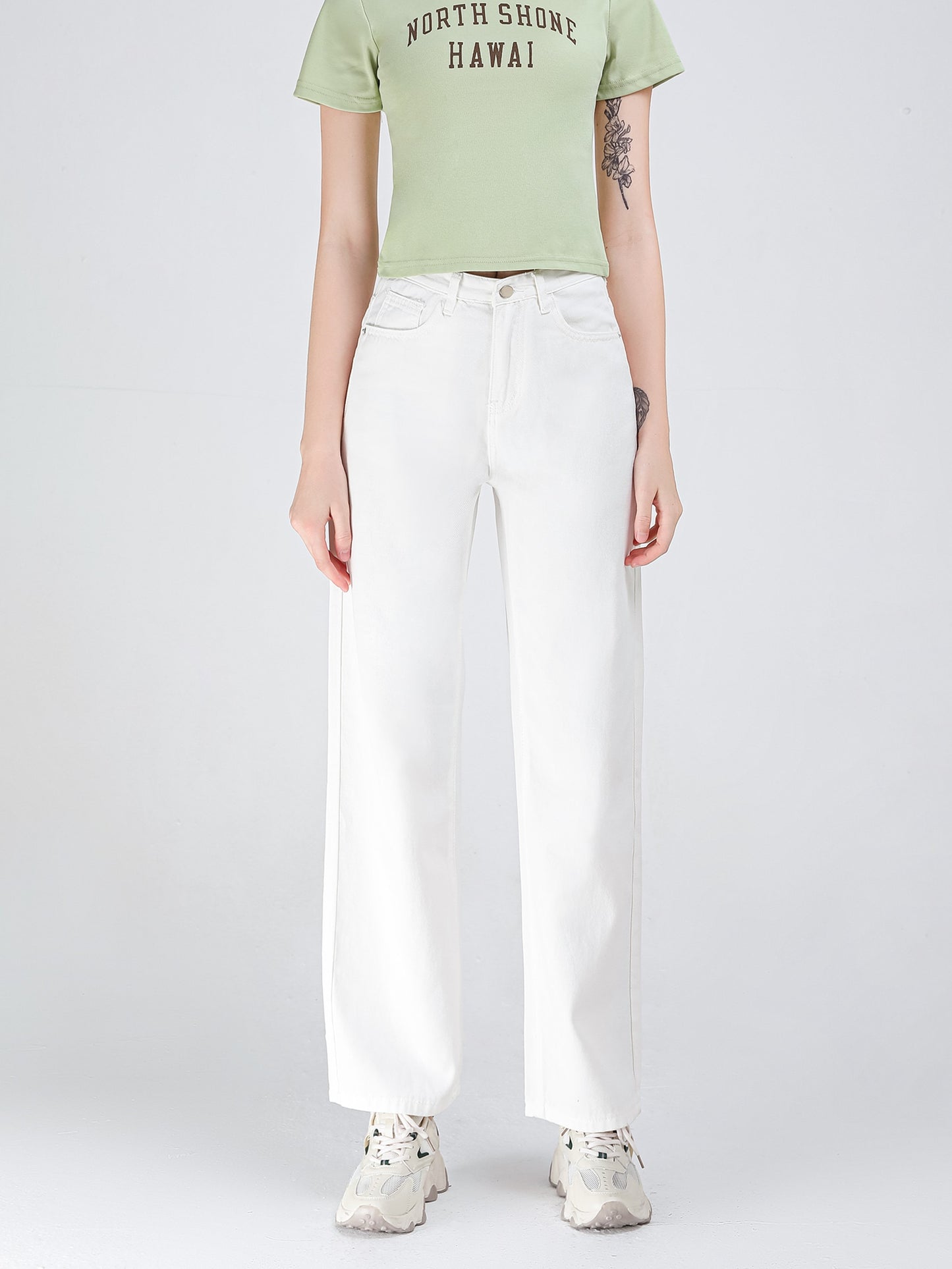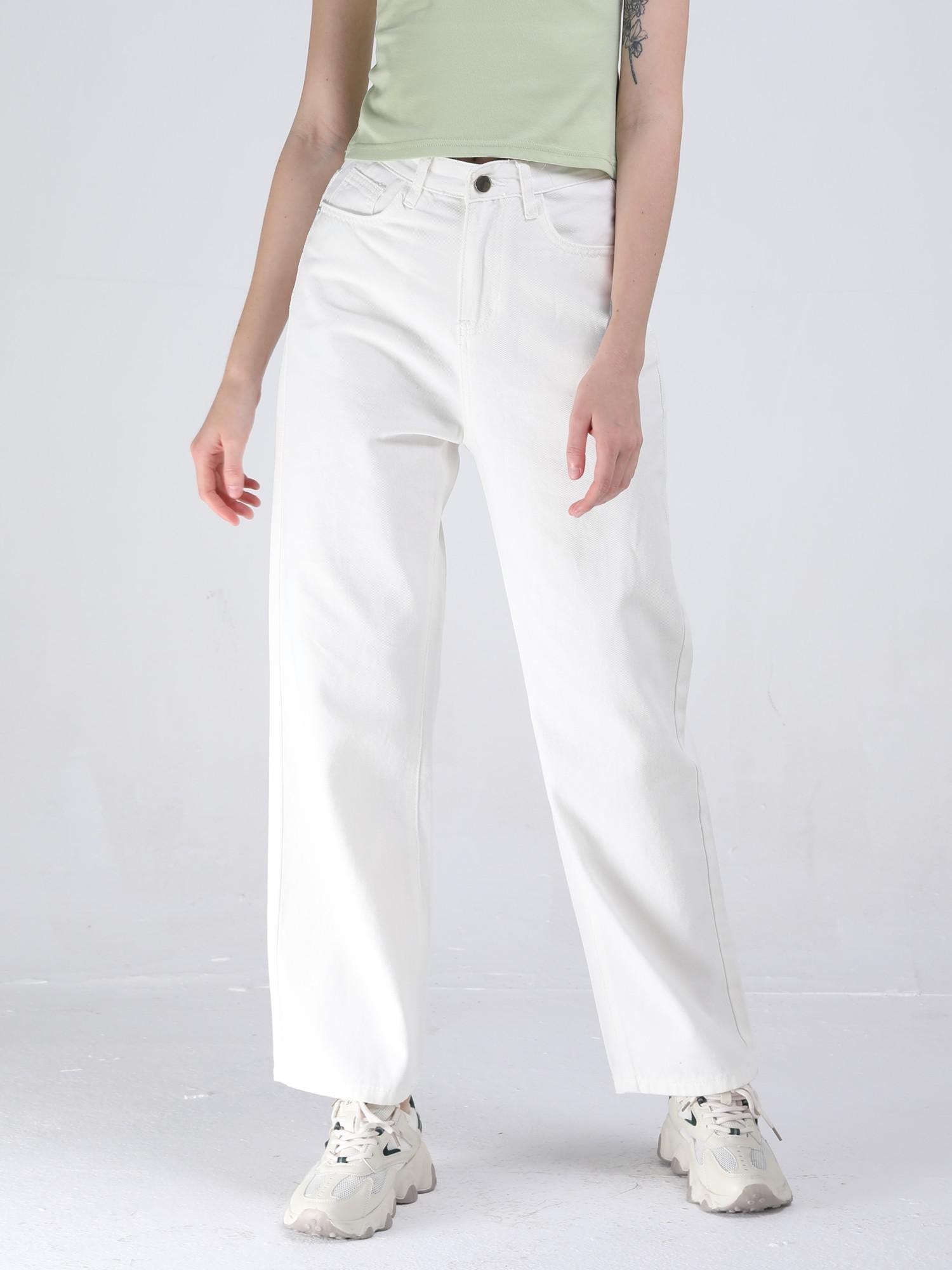 Dámské stylové široké bílé džíny se zapínáním na knoflík.