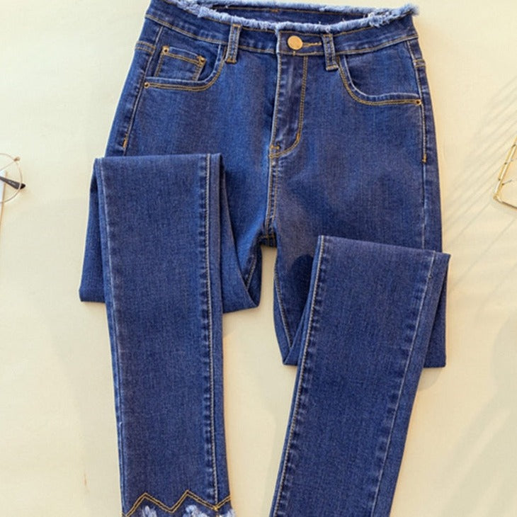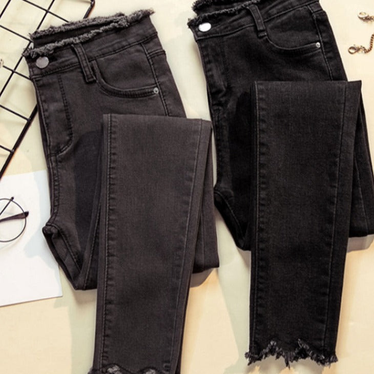 Dámské stylové skinny džíny s roztrháním na pasu a kotnících. Více barev na výběr.