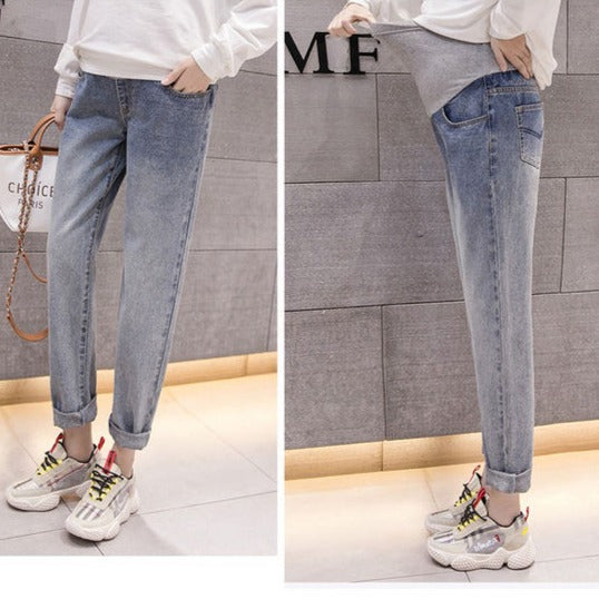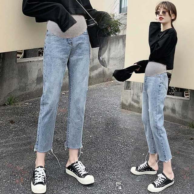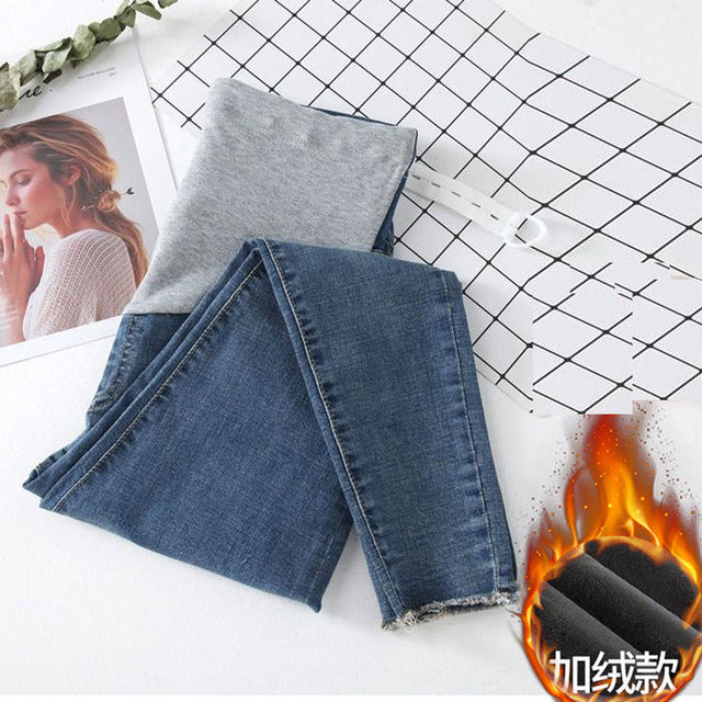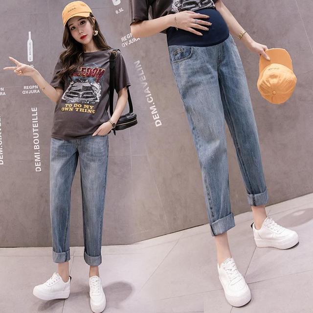 Dámské stylové pohodlné těhotenské kalhoty ve více odstínech modré.