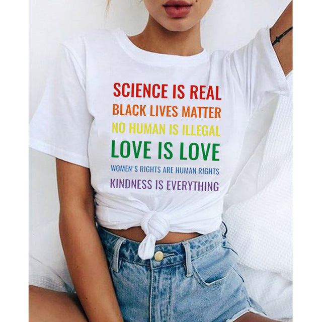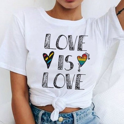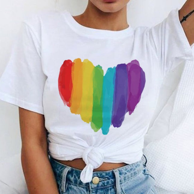 Dámské pohodlné triko s duhovým srdcem a dalšími potisky.