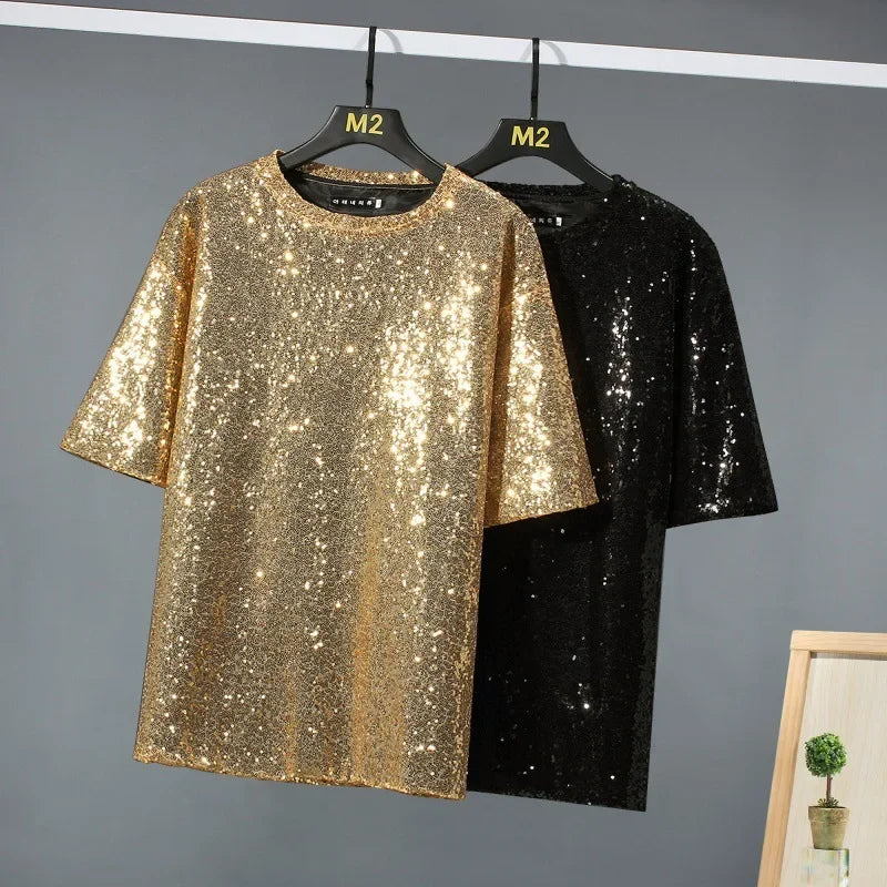 Dámské elegantní triko s flitry s krátkým rukávem. Více barev na výběr.