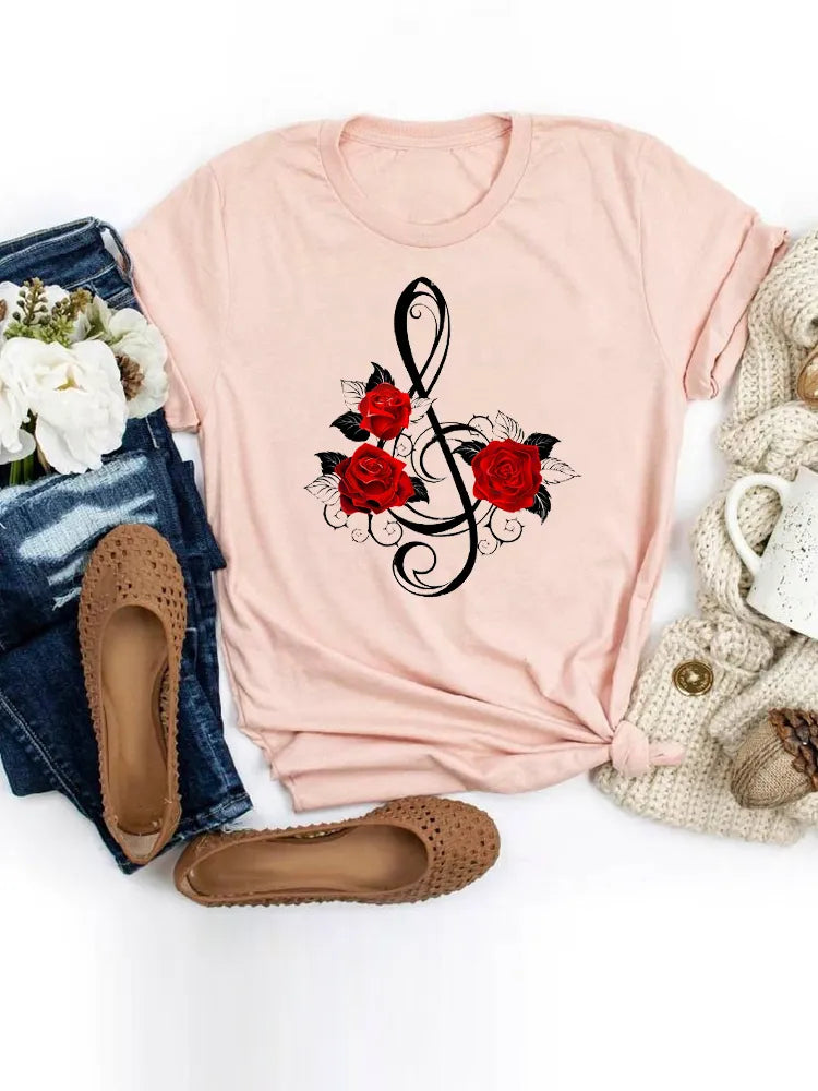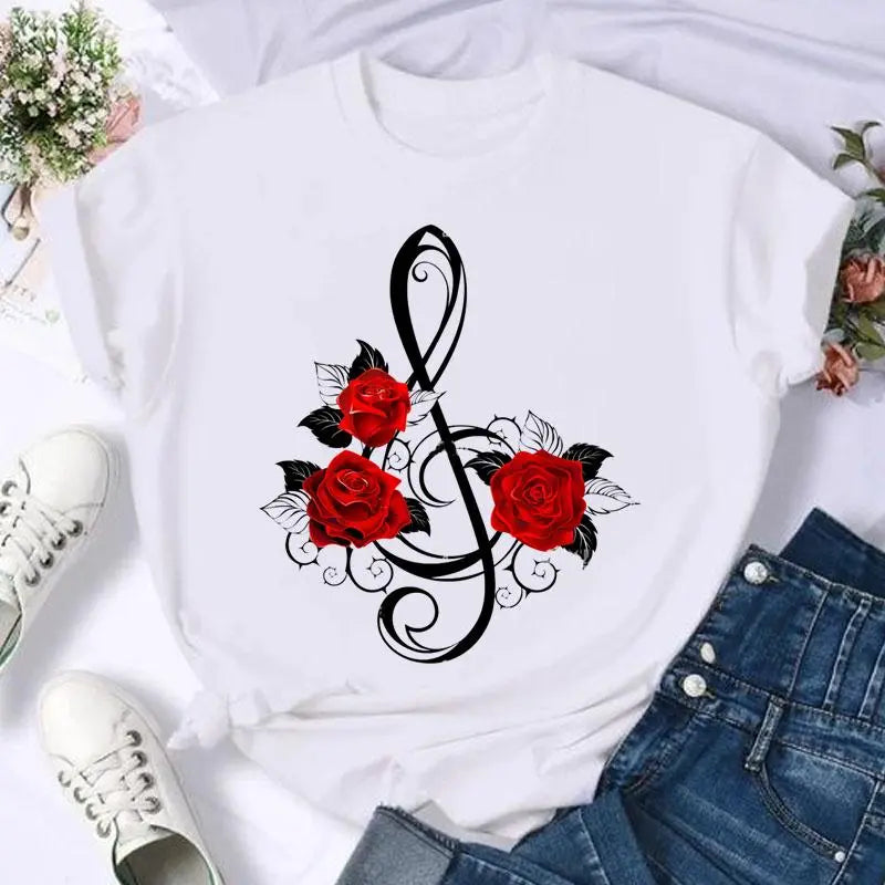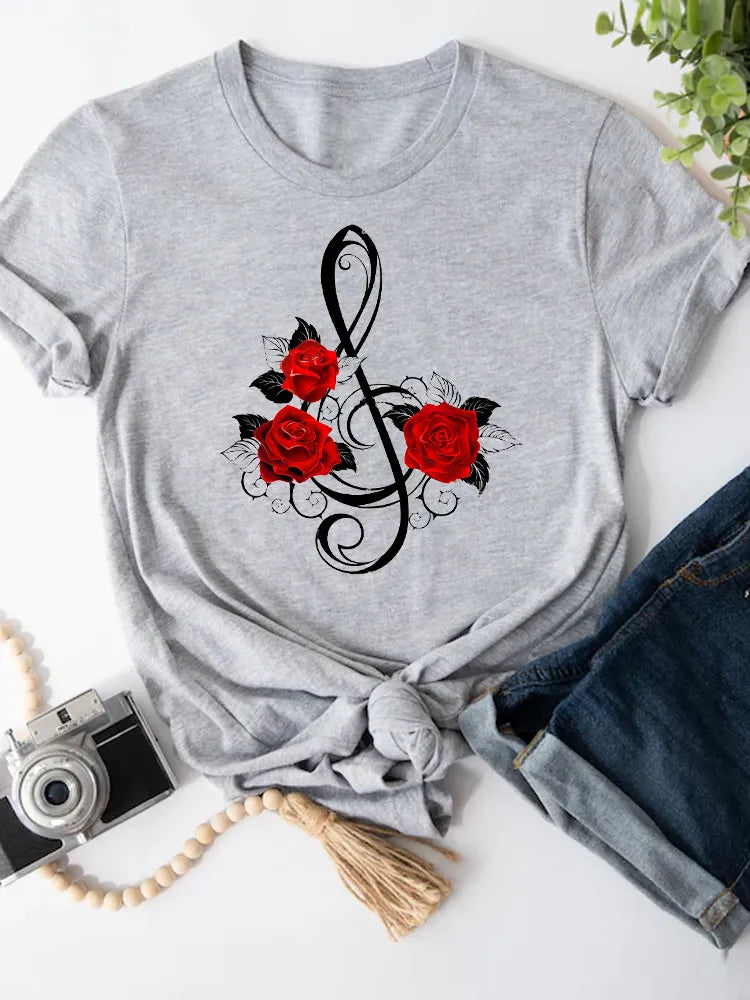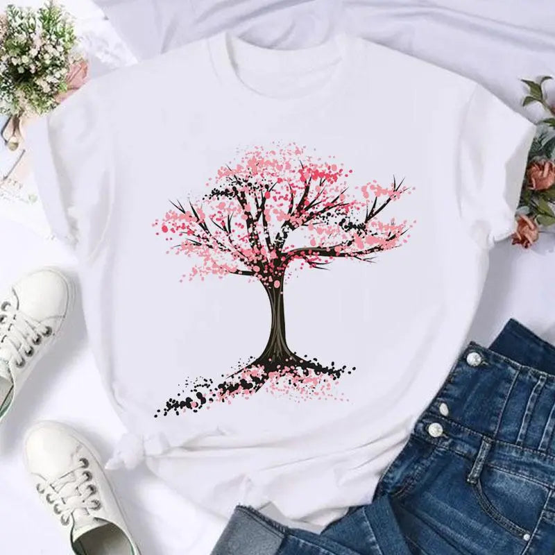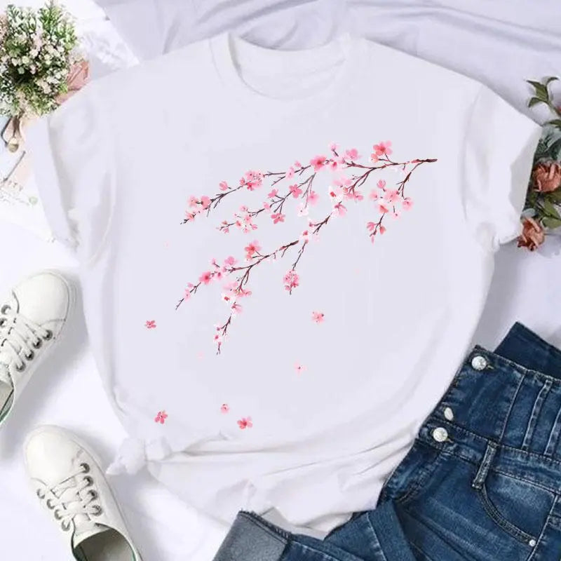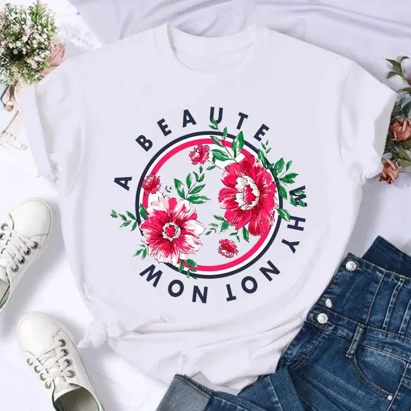 Dámské jednobarevné triko s potiskem květin. Více druhů na výběr.