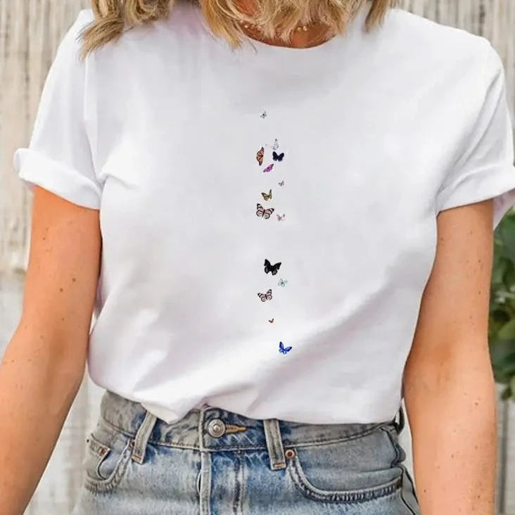 Dámské bílé triko s potiskem květin, nápisu a dalších. Více druhů na výběr.