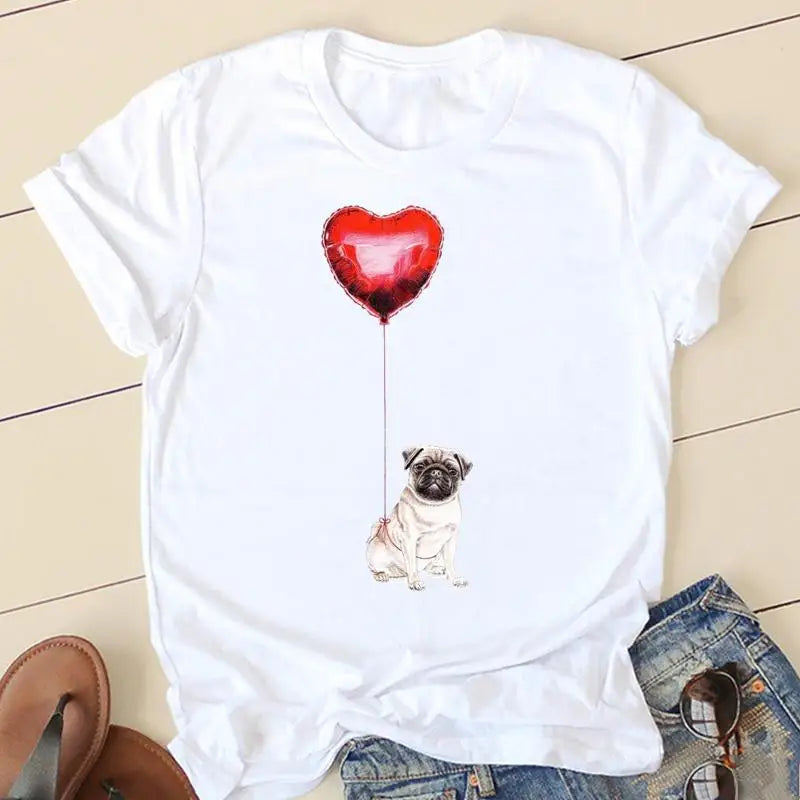 Dámské stylové triko s potiskem psa a krátkým rukávem. Více stylů na výběr.