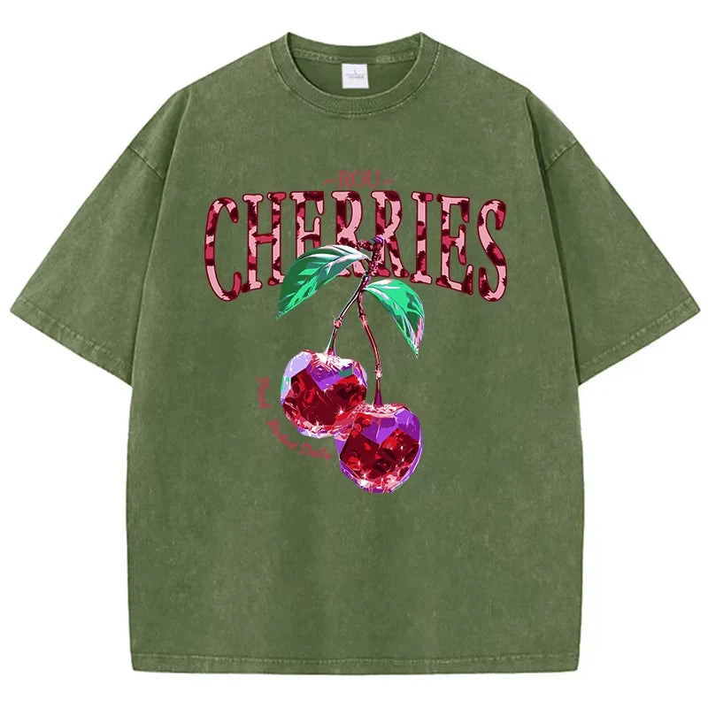 Dámské stylové triko třešně s leopardím vzorem. Více barev na výběr.