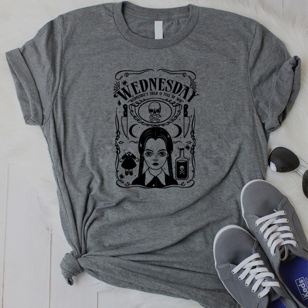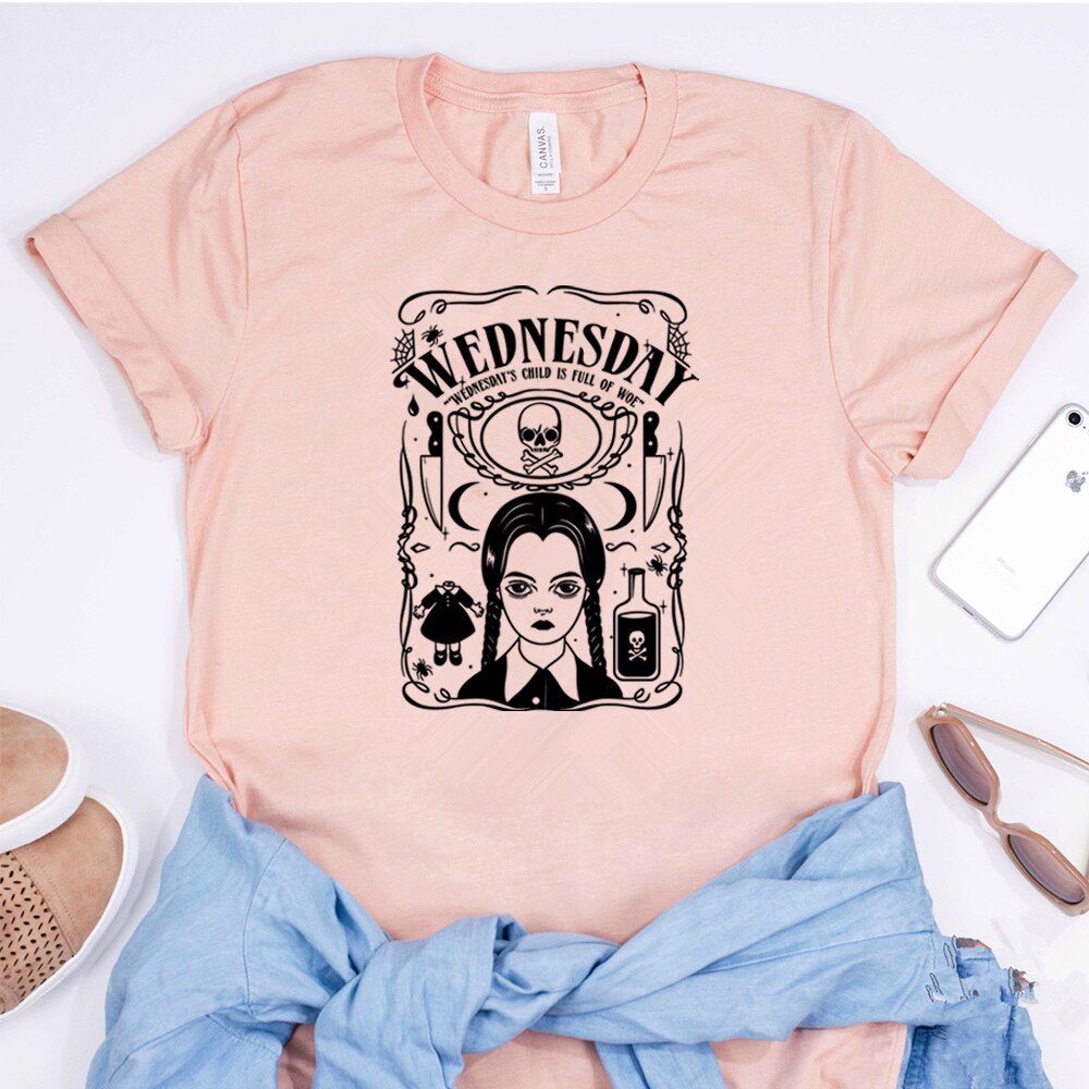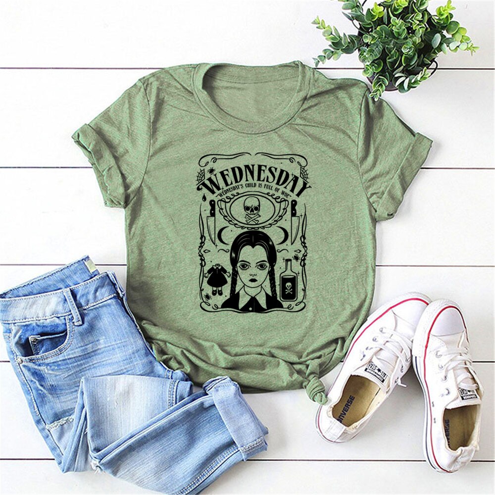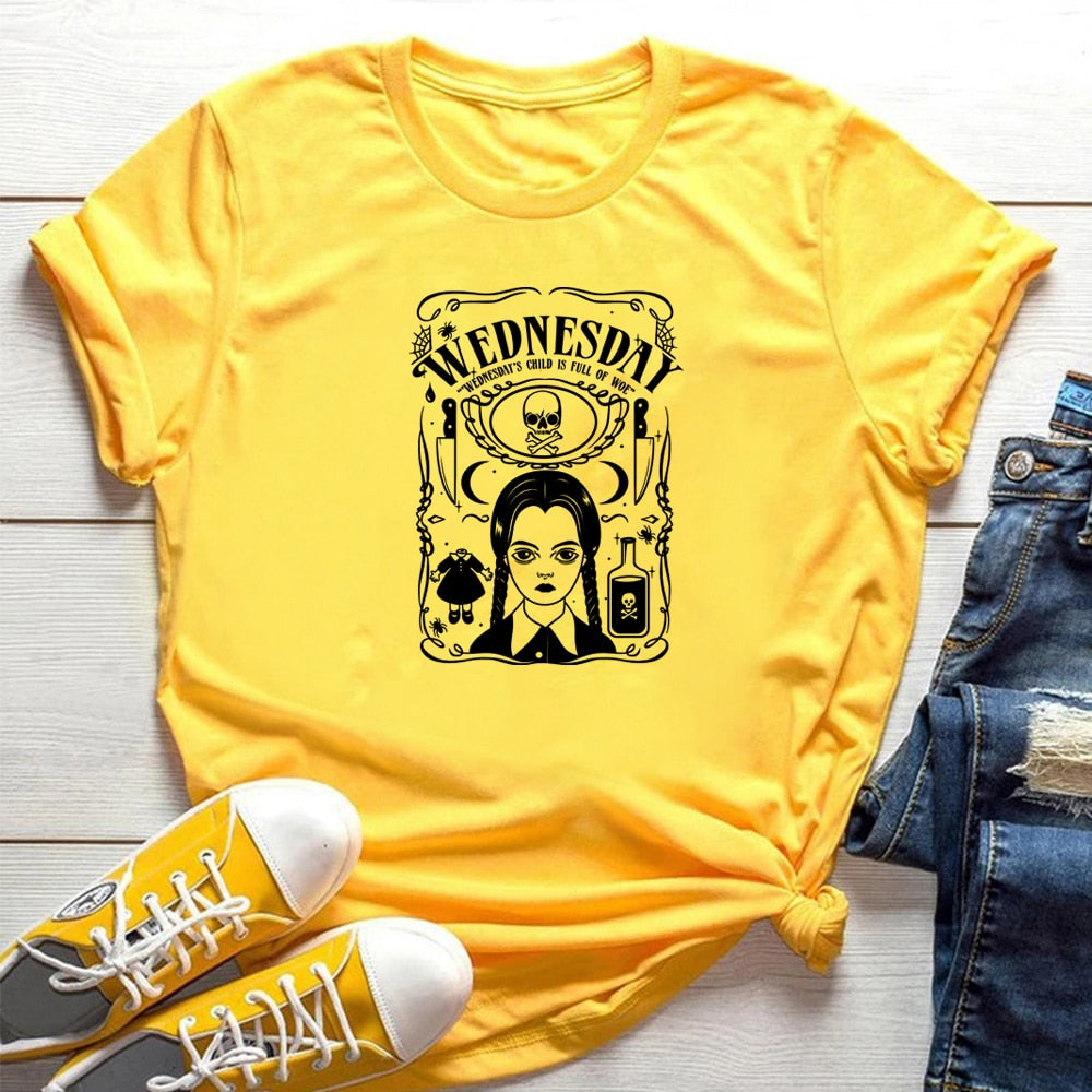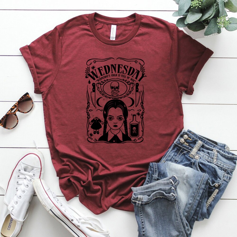 Dámské triko se vzorem Wednesday Addams s krátkým rukávem.
