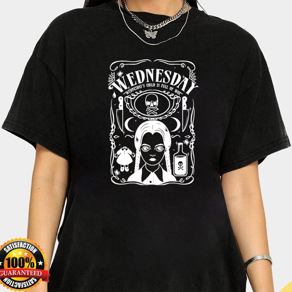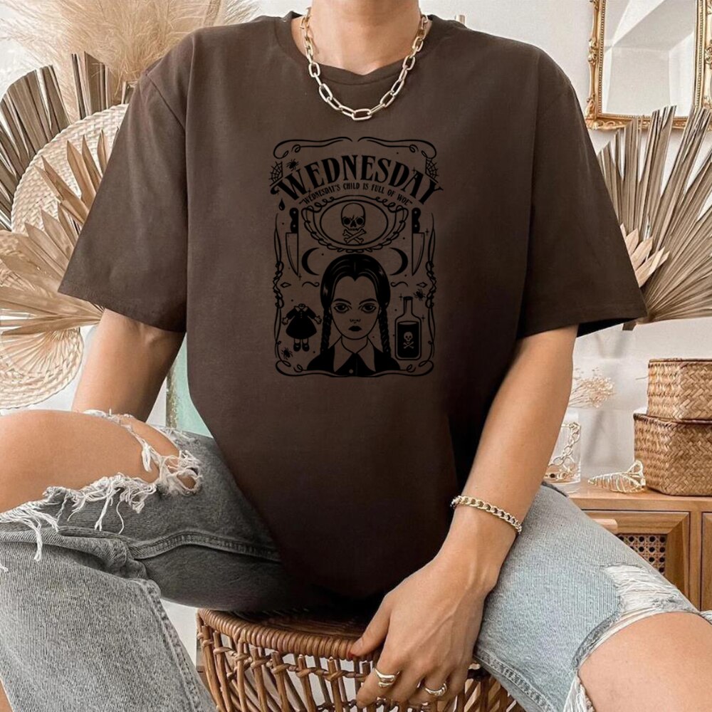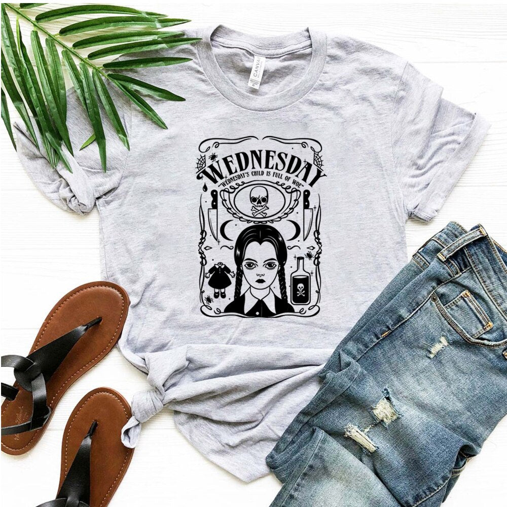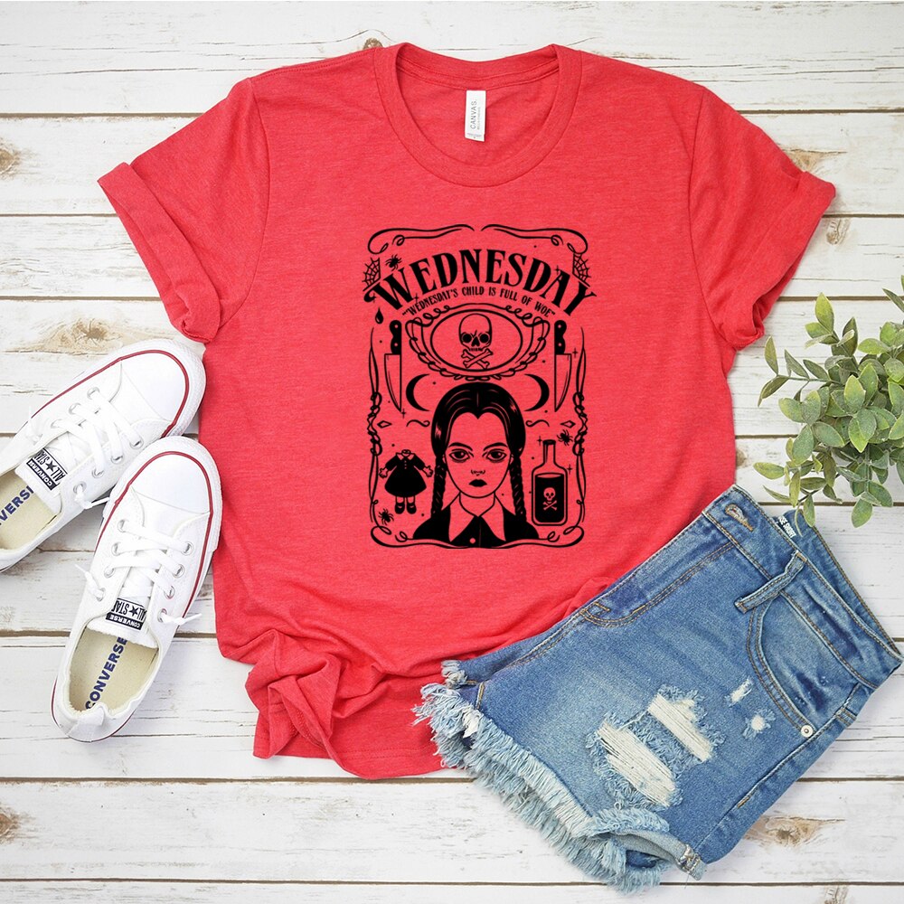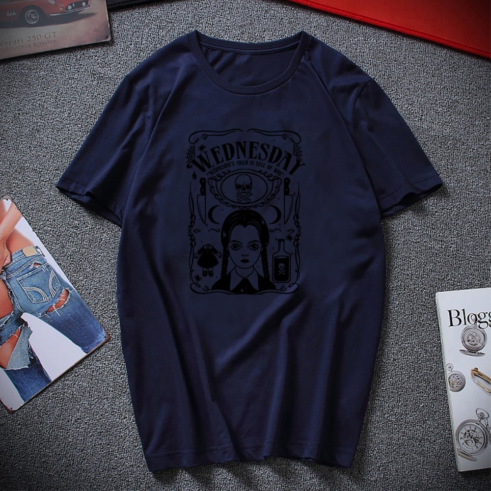 Dámské triko se vzorem Wednesday Addams s krátkým rukávem.