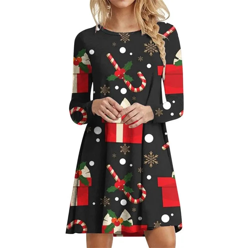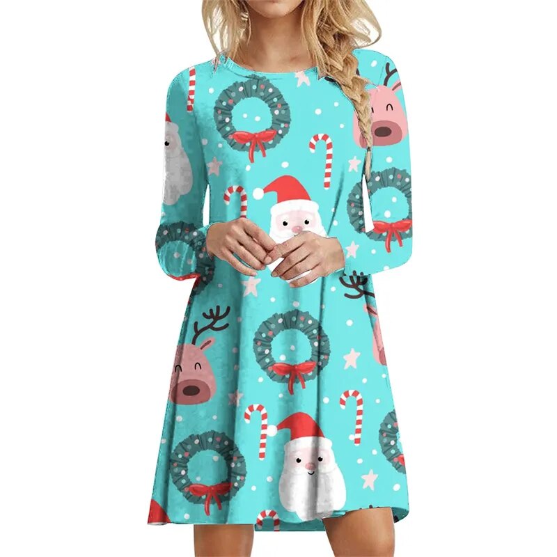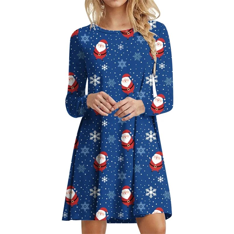 Dámské vánoční šaty s dlouhým rukávem a krásným vzorem. Více druhů na výběr.