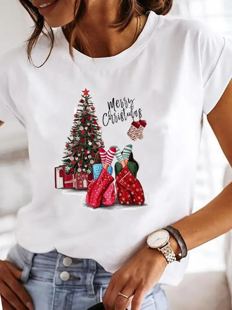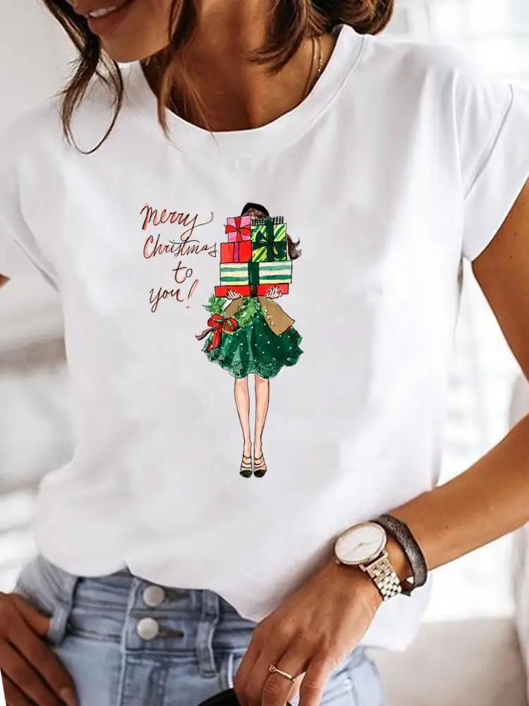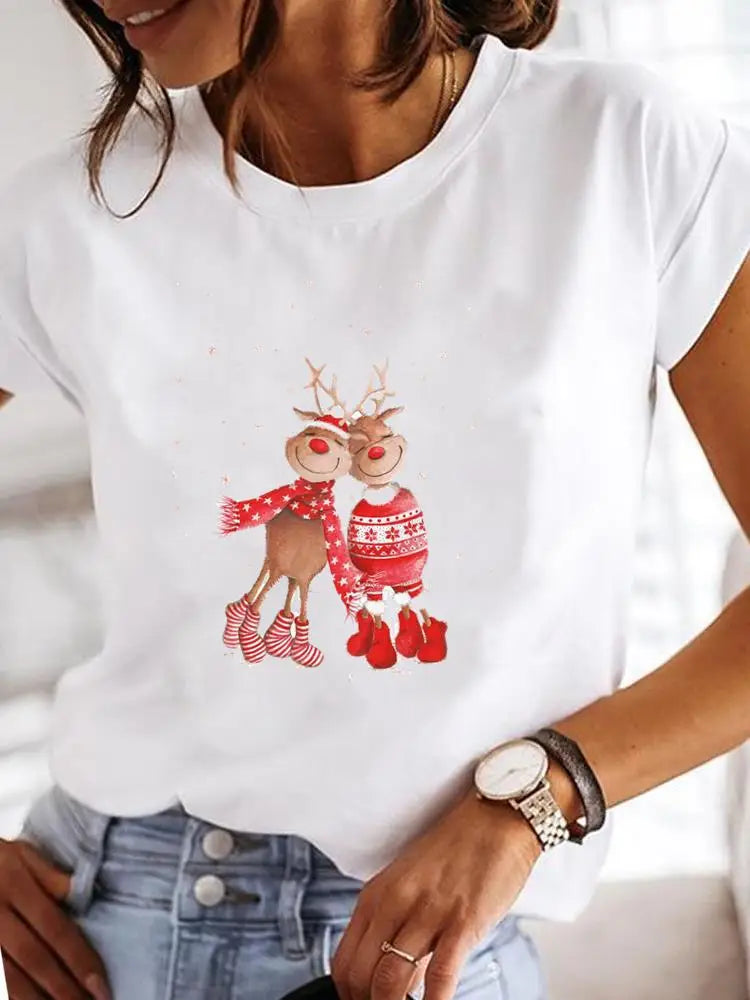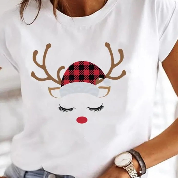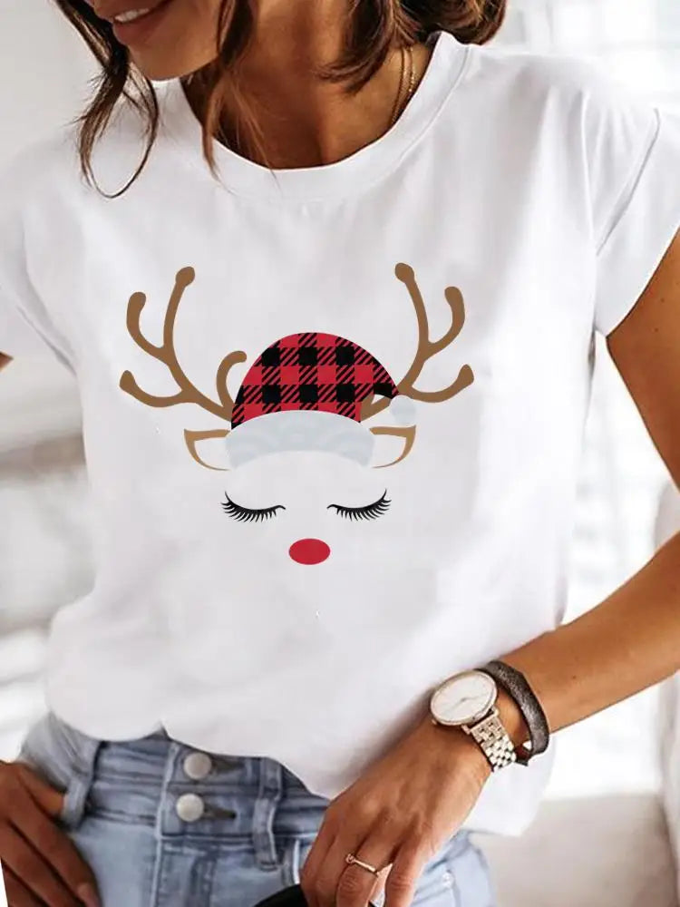 Dámské stylové vánoční triko se sobem a krátkým rukávem. Více druhů na výběr.