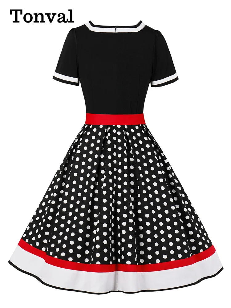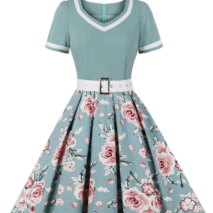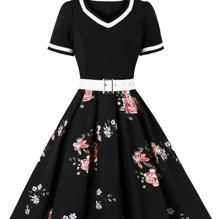 Dámské vintage šaty se vzorem na sukni a krátkým rukávem. Více barev na výběr.