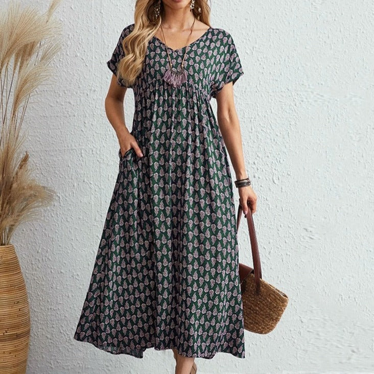 Dámské elegantní volné maxi letní šaty s krátkým rukávem. Více barev na výběr.