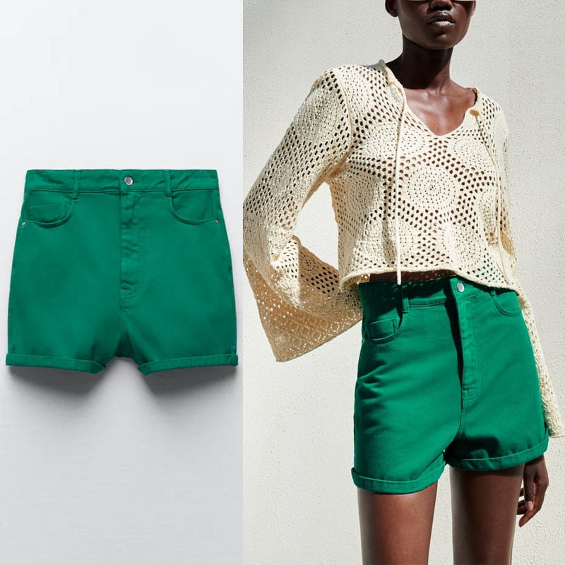 Dámské stylové a originální kraťasy v krásné syté zelené barvě.