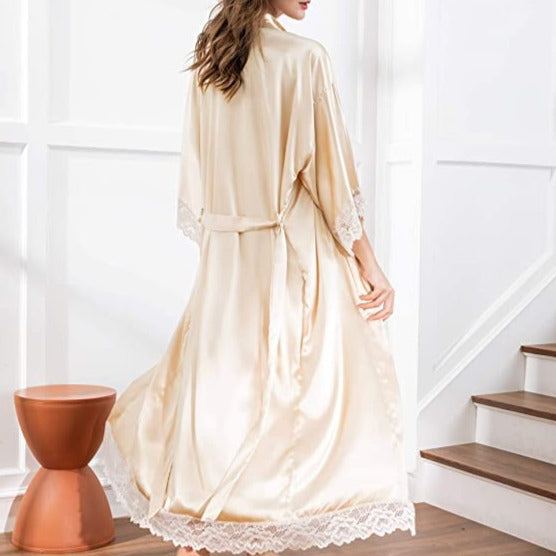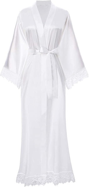 Dámský dlouhý saténový župan v různých krásných barvách s krajkou.