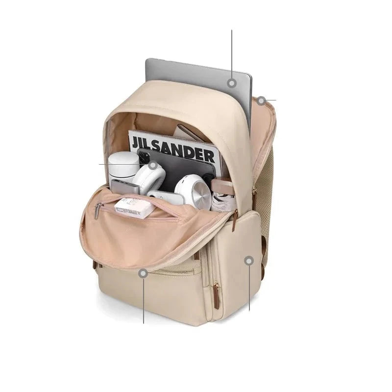 Dámský jednobarevný elegantní batoh s pěti kapsami na zip. Více barev na výběr.