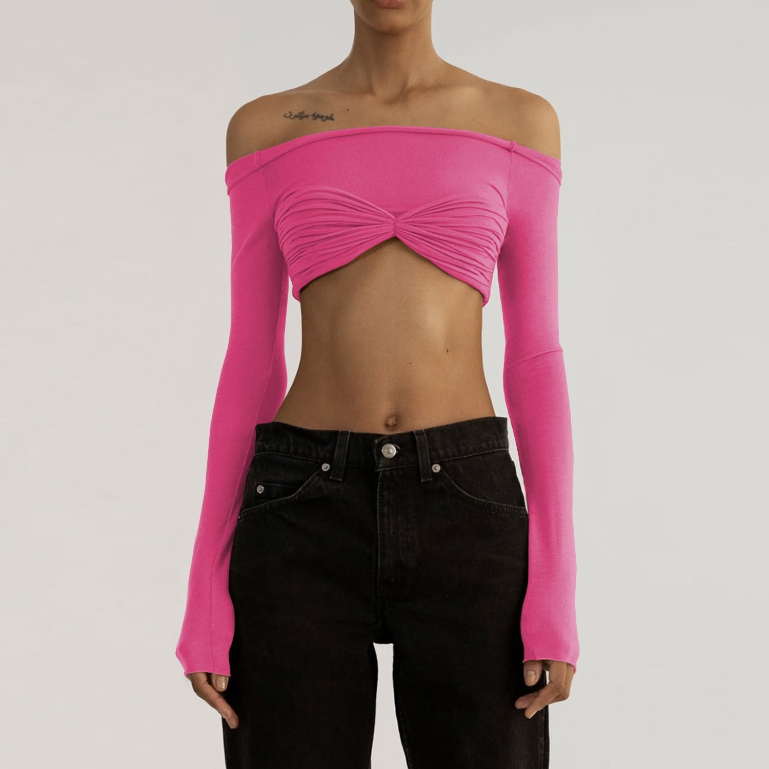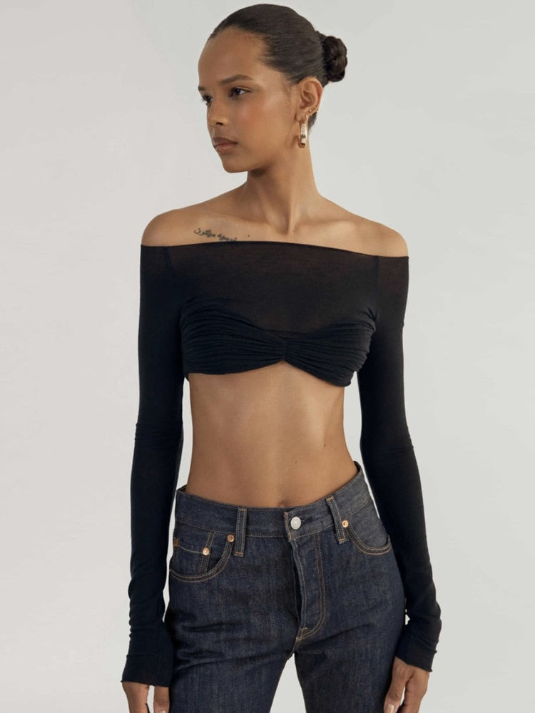 Dámský elegantní croptop s dlouhým průhledným rukávem. Více barev na výběr.